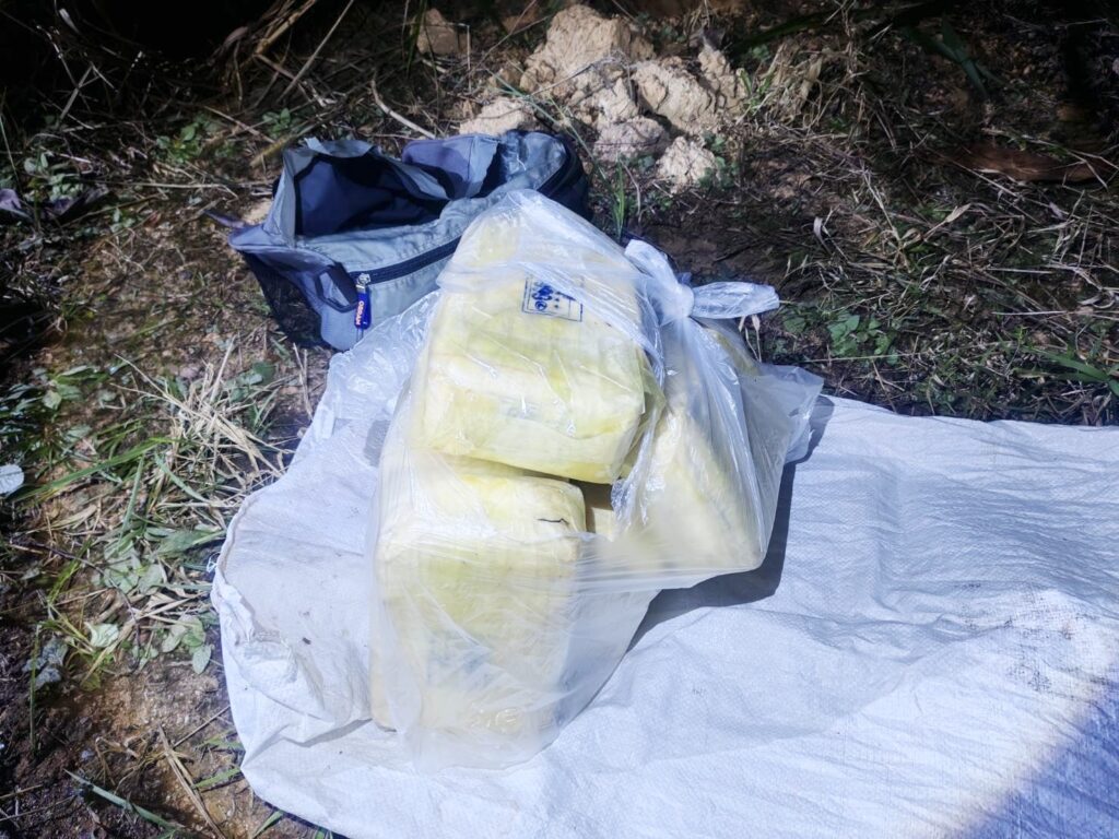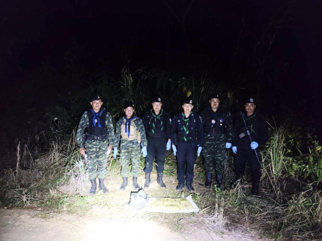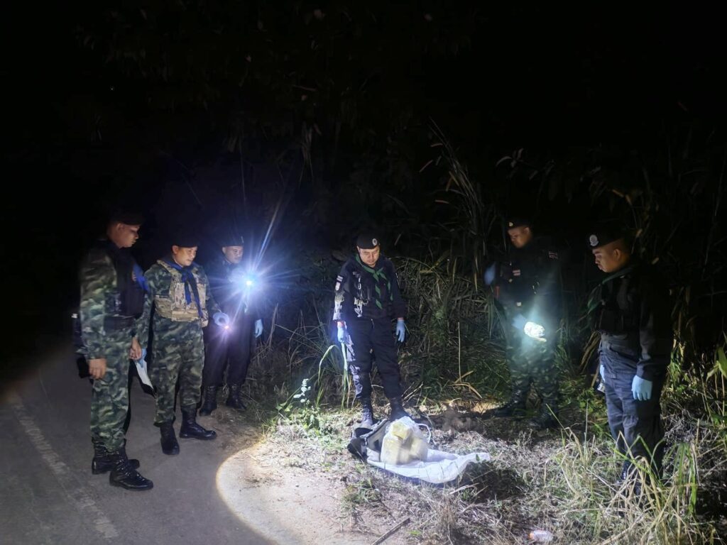 เมื่อเจ้าหน้าที่เห็นว่ามีพิรุธจึงได้นำรถออกติดตามไปจนถึงบริเวณข้างแยกอ่างเก็บน้ำห้วยดีหมี หมู่บ้านหัวดง หมู่ 12 ต.หงาว อ.เทิง จ.เชียงราย คนบนรถจักยานยนต์ได้ทิ้งสิ่งของบางอย่างเอาไว้ข้างทางก่อนจะอาศัยความมืดขับหลบหนีไปได้