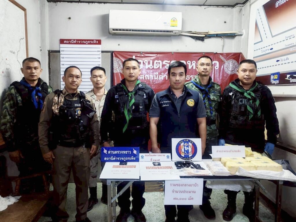 เจ้าหน้าที่จึงเข้าตรวจวัตถุที่ทิ้งเอาไว้พบเป็นกระเป๋าใบเล็กเมื่อเปิดดูภายในปรากฎว่าบรรจุยาเสพติดประเภทยาบ้ารวมจำนวน 70,000 เม็ดดังกล่าว จึงทำการตรวจยึดไว้และนำส่ง สภ.เทิง ตามกฏหมายต่อไป.