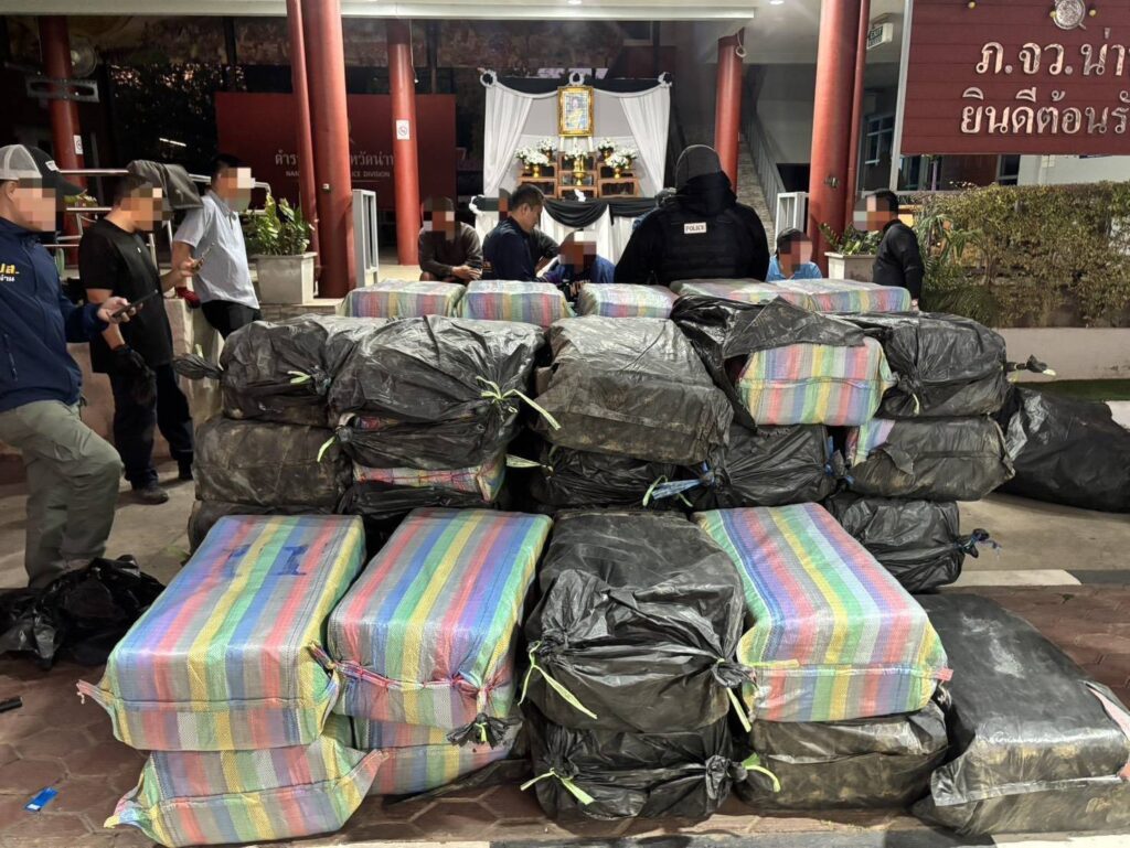 เบื้องต้น จากการสืบสวนทราบว่า รถบรรทุกคันดังกล่าวเดินทางเข้าพื้นที่จังหวัดน่านในช่วงกลางคืนของวันที่ 17 มกราคม 2569 โดยใช้เส้นทางอำเภอบ้านหลวง มุ่งหน้าอำเภอเมืองน่าน ก่อนจะไปจอดบริเวณสถานีขนส่งผู้โดยสารจังหวัดน่าน เจ้าหน้าที่จึงแสดงตัวเข้าตรวจสอบ พบยาบ้าซุกซ่อนอยู่ด้านหลังรถ โดยอำพรางด้วยถุงพลาสติกบรรจุขิงสด จึงดำเนินการตรวจค้นและจับกุมผู้ต้องหา