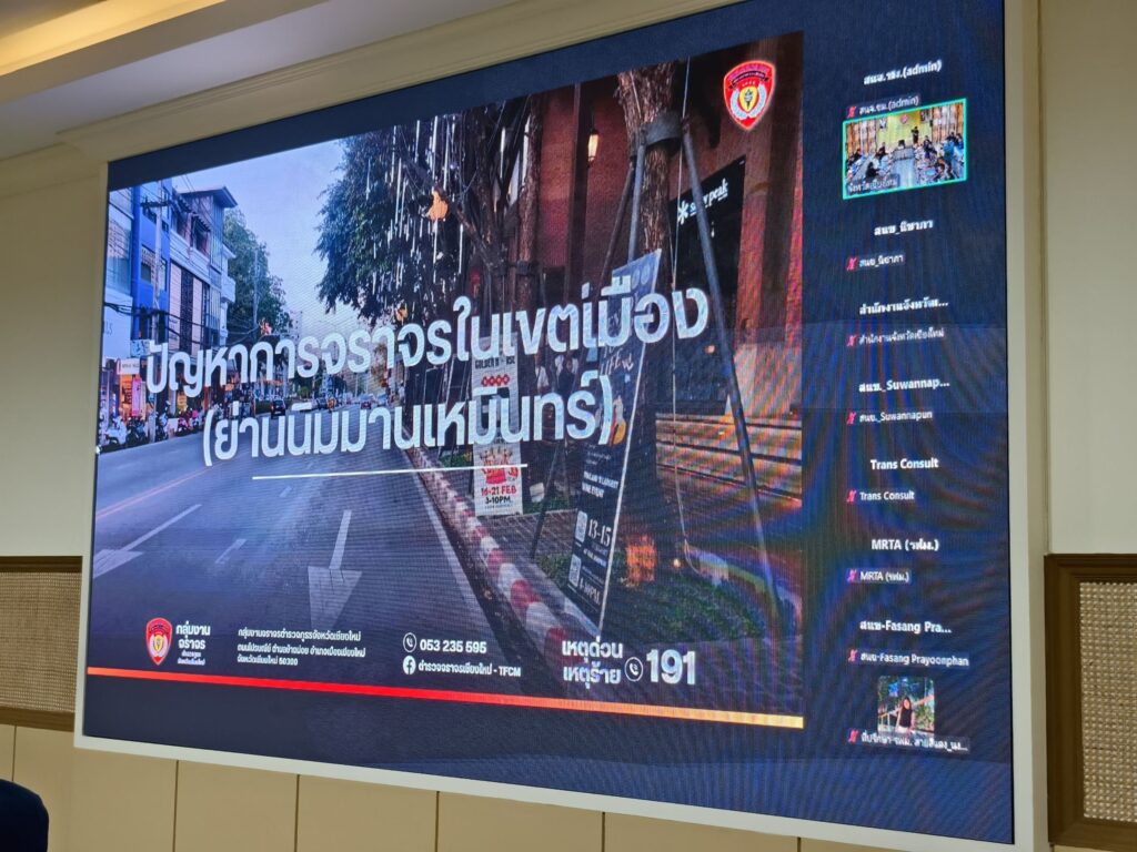 วันอังคาร ที่ 17 กุมภาพันธ์ 2569 เวลา 13.30 น.พ.ต.อ.มนัสชัย อินทร์เถื่อน ผกก.กลุ่มงานจราจรฯ,พ.ต.ท.สุนทร อินใจคำ รอง ผกก.ฯ ,พ.ต.ท.วีระยา วงค์แก้ว รอง ผกก.ฯ,พ.ต.ท.ศักดา โชติพัฒนโภคิน รอง ผกก.ฯ ร่วมประชุม คณะอนุกรรมการจัดระบบการจราจรทางบกจังหวัดเชียงใหม่ ครั้งที่ 1/2569 โดยในที่ประชุมมีเรื่องสืบเนื่องโดยกลุ่มงานจราจรตำรวจภูธรจังหวัดเชียงใหม่ เรื่องความคืบหน้าการแก้ไขปัญหาการจราจรในเขตเมือง (บริเวณย่านนิมมานเหมินทร์ และ ถนนมหิดล บริเวณหน้าโรงเรียนวารีเชียงใหม่และโรงเรียนมงฟอร์ตวิทยาลัย แผนกมัธยม)