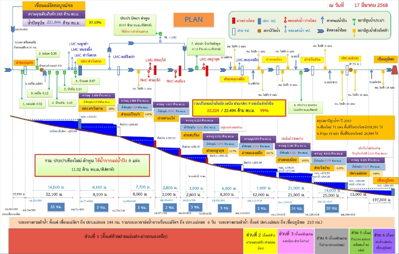 “รอบเวรส่งน้ำรอบสุดท้ายคือ วันที่ 29 พฤษภาคม 2568 โดยที่การส่งน้ำในรอบที่ 1 ถึงรอบที่ 10 สามารถประหยัดน้ำประมาณ 1.4 ล้าน ลบ.ม. (น้อยกว่าแผนการส่งน้ำที่ตั้งไว้) ช่วงนี้จะเป็นรอบเวรส่งน้ำที่ 11 โดยจะเปิดน้ำโรยน้ำไปจากเขื่อนแม่งัดฯ ผ่านแม่น้ำปิงลงไปจนถึงประตูระบายน้ำแม่สอย ที่ปริมาณ 12 ลบ.ม.ต่อวินาที เป็นเวลา 6 วัน ซึ่งจะโรยน้ำในปริมาณน้ำต่อเนื่องไปจนขบรอบเวรการส่งน้ำ และในช่วงสงกรานต์จะโรยน้ำในปริมาณที่มากขึ้น เป็น 14 – 17 ลบ.ม.ต่อวินาที” นายอัธยาฯ กล่าว