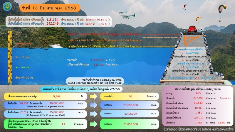 เชียงใหม่-เขื่อนแม่งัดสมบูรณ์ชล ปรับแผนส่งน้ำช่วยแม่น้ำปิง เพิ่มเป็น 85 ล้าน ลบ.ม. ต้นฝนคาดมีพื้นที่รับน้ำได้กว่า 135 ล้าน ลบ.ม.