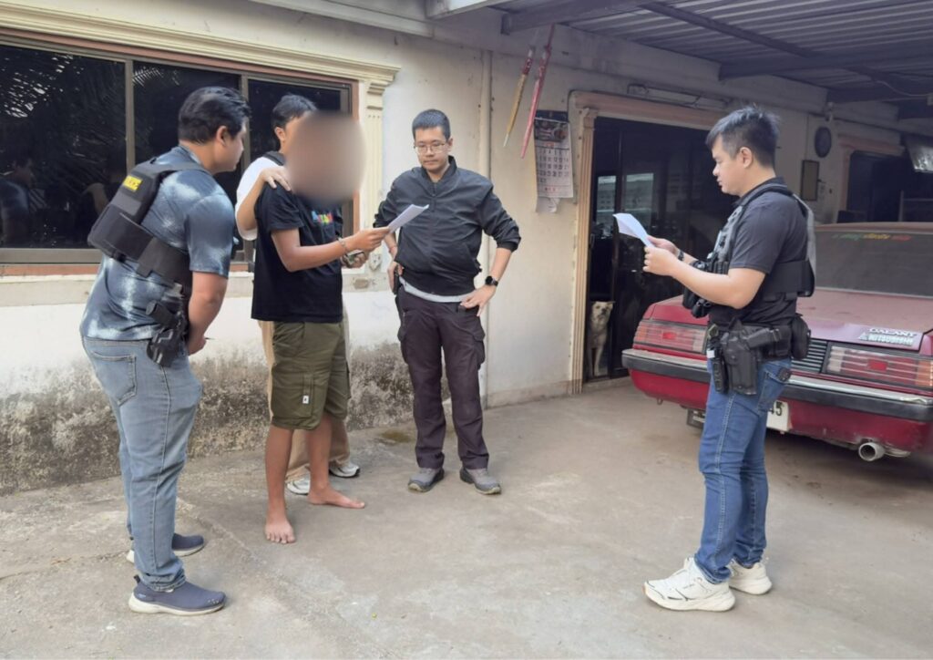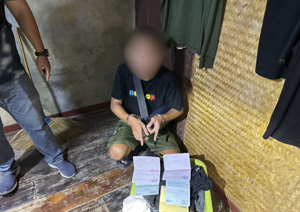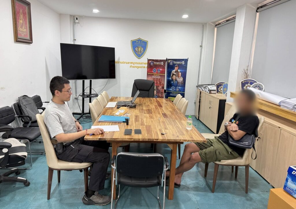 เจ้าหน้าที่ตำรวจ ศปอส.ภ.5 เข้าจับกุม นายศุภกิจ ขอสงวนนามสกุล ผู้ต้องหาตามหมายจับศาลจังหวัดเชียงใหม่ ในคดีเกี่ยวข้องกับเครือข่ายหลอกลวงออนไลน์และการใช้บัญชีม้ารับ–ถอนเงินจากผู้เสียหาย