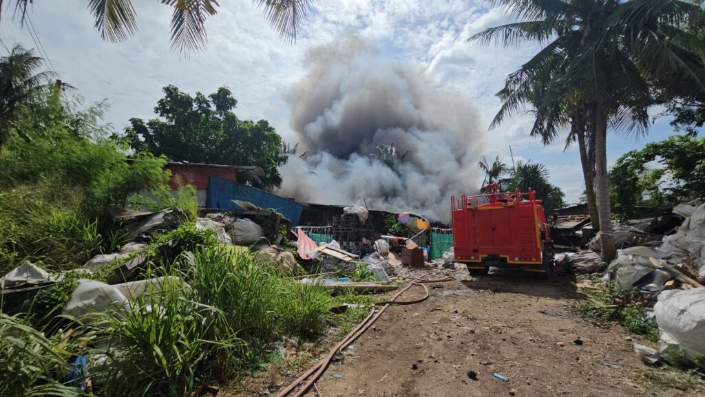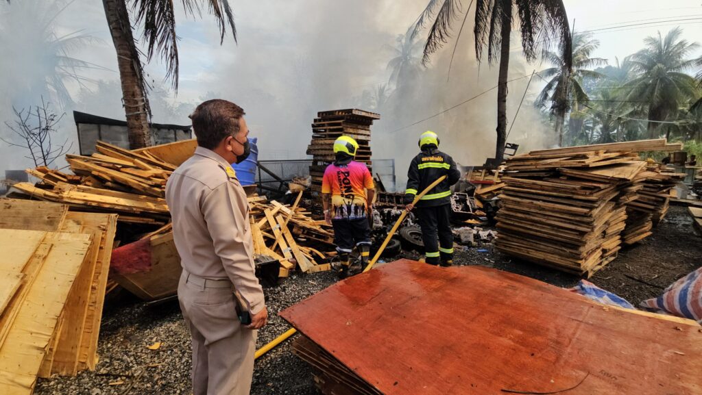 เมื่อเวลา 09.00 น. วันที่ 19 สิงหาคม 2568 พ.ต.ท.ศุภวัฒน์ ลัทธปรีชา รอง ผกก.ป. สภ.บางละมุง พร้อมเจ้าหน้าที่หน่วยบรรเทาสาธารณภัย และรถน้ำจากเทศบาลตะเคียนเตี้ย เทศบาลบางละมุง และเทศบาลหนองปลาไหล ระดมกำลังเข้าระงับเหตุเพลิงไหม้โรงงานรีไซเคิล บรรจงรีไซเคิ้ล ภายในซอยนาวัง 7 ต.ตะเคียนเตี้ย อ.บางละมุง จ.ชลบุรี