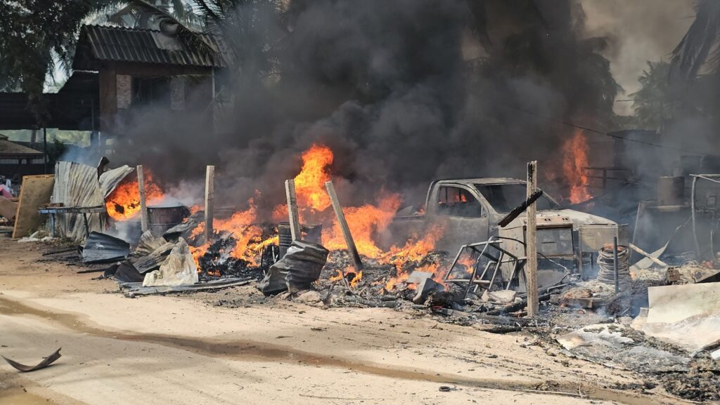 (มีคลิป)ชลบุรี-ไฟไหม้วอด โรงงานรีไซเคิลบางละมุง รถกระบะ-จยย.-โฟล์คลิฟท์วอด ค่าความเสียหายกว่า 3 ล้าน