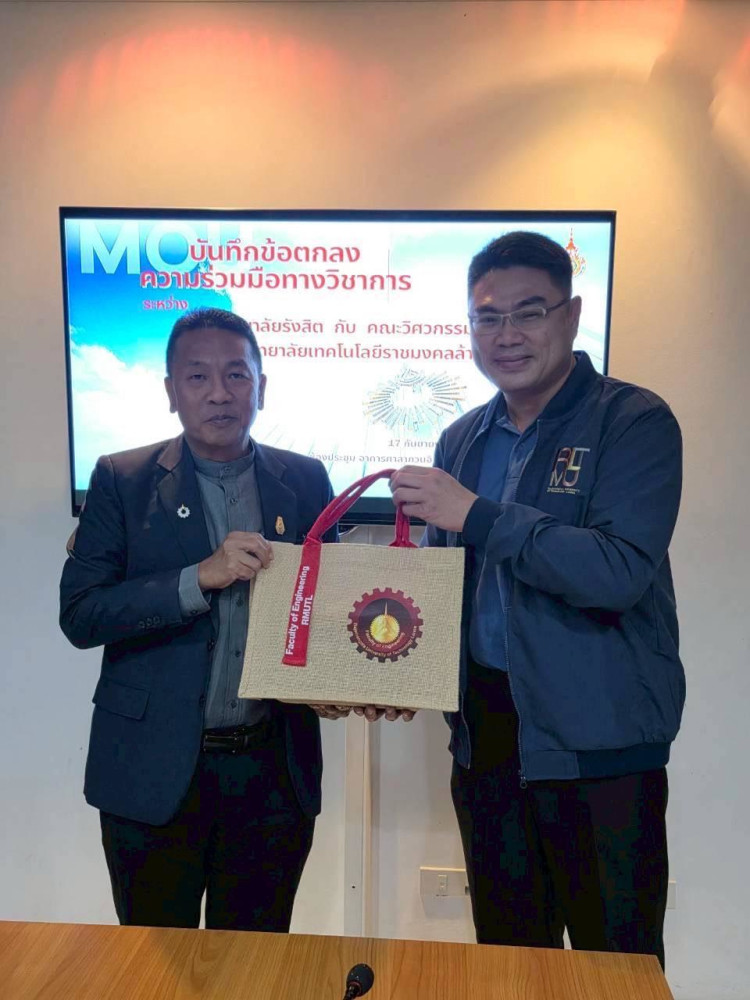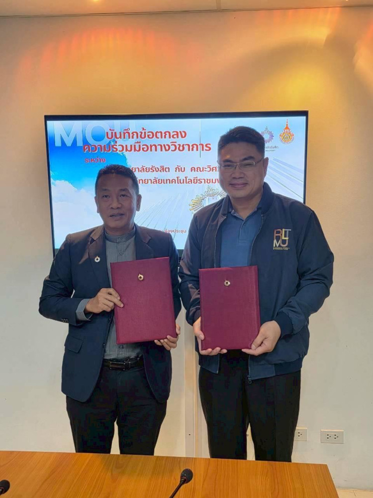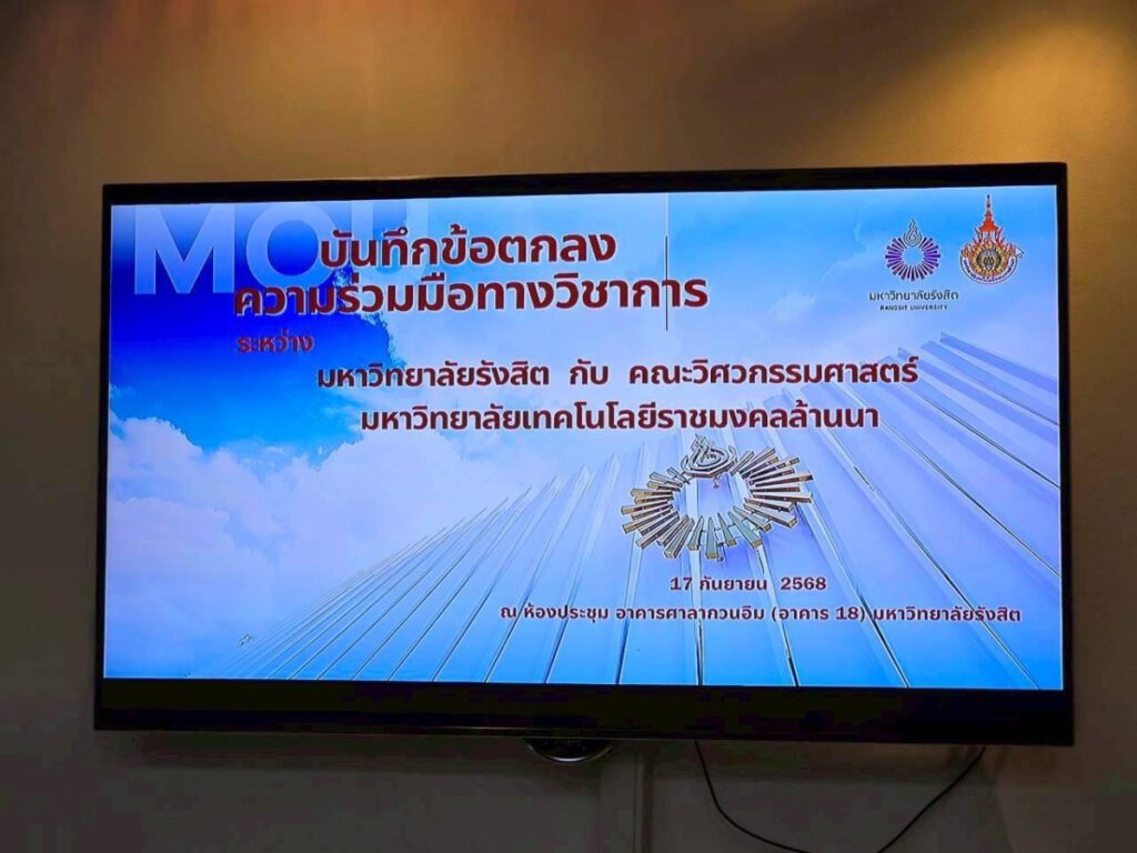 เมื่อวันที่ 17 กันยายน 2568 คณะวิศวกรรมศาสตร์ มหาวิทยาลัยเทคโนโลยีราชมงคลล้านนา นำโดย ผศ.นพพร พัชรประกิติ คณบดีคณะวิศวกรรมศาสตร์ ได้ร่วมลงนามในบันทึกข้อตกลงความร่วมมือทางวิชาการ (MOU) กับมหาวิทยาลัยรังสิต โดยมี รศ.นันทชัย ทองแป้น คณบดีวิทยาลัยวิศวกรรมชีวการแพทย์ มหาวิทยาลัยรังสิต เป็นผู้แทนลงนาม ณ ห้องประชุม อาคารศาลากวนอิน มหาวิทยาลัยรังสิต