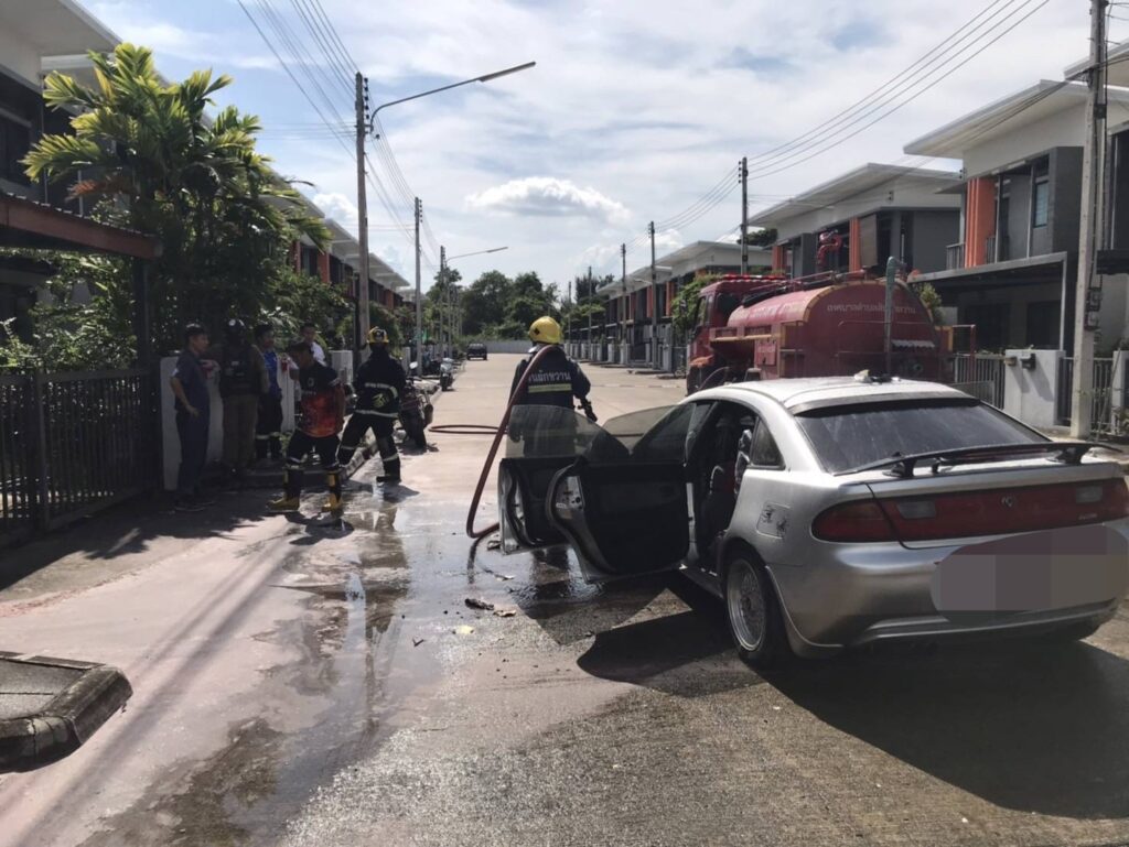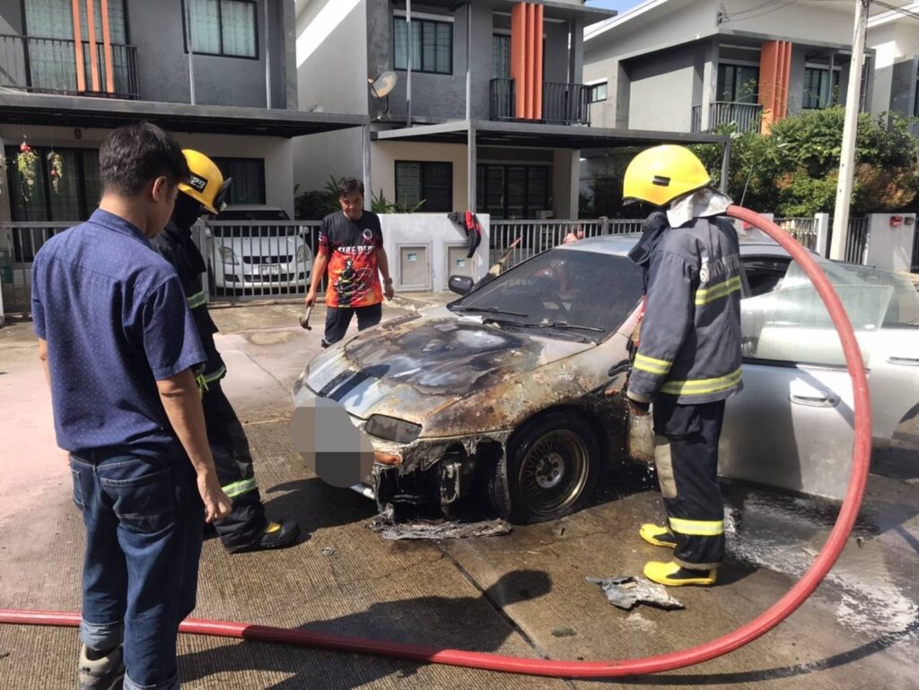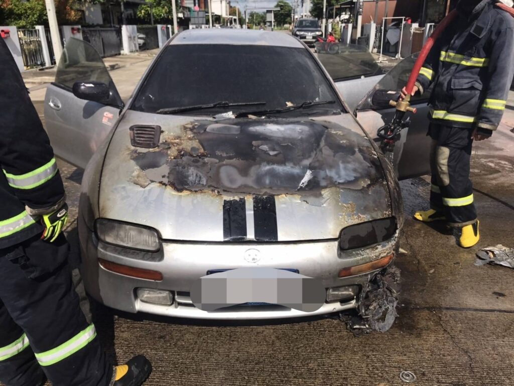 เมื่อไปถึง เจ้าหน้าที่พบรถเก๋งคันหนึ่งมีกลุ่มควันและเปลวไฟลุกไหม้อยู่บริเวณห้องเครื่องยนต์ จากการสอบถามผู้ขับขี่ที่อยู่ในที่เกิดเหตุ ทราบว่าขณะกำลังขับรถอยู่ จู่ ๆ ก็เกิดประกายไฟลุกไหม้ขึ้นภายในห้องเครื่องยนต์อย่างรวดเร็ว โชคดีที่เจ้าหน้าที่ดับเพลิงสามารถเข้าควบคุมสถานการณ์และระงับเหตุได้อย่างทันท่วงที ทำให้ไฟสงบลงโดยไม่มีใครได้รับอันตราย