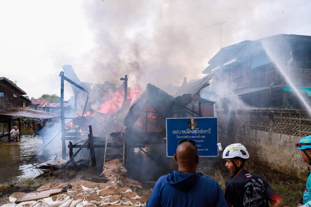สุโขทัย-ผู้ว่าราชการจังหวัดสุโขทัย ลงพื้นที่ติดตามสถานการณ์เหตุเพลิงไหม้บ้านเรือนประชาชน บริเวณหลังตลาดไตรรัตน์ ชุมชนวัดคูหาสุวรรณ