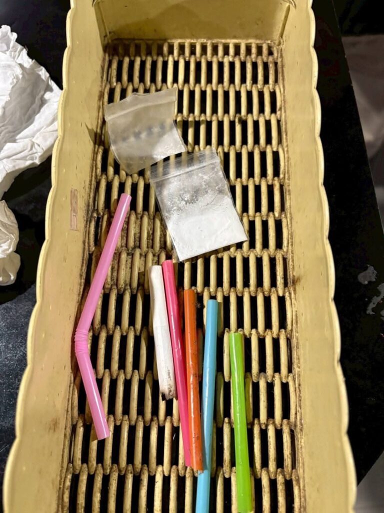 จากการตรวจสอบ เจ้าหน้าที่พบกลุ่มวัยรุ่นมั่วสุ่มภายในร้าน ชุด จนท. จึงแสดงความบริสุทธิ์ใจและขอตรวจสารเสพติดในปัสสาวะ ของกลุ่มบุคคลดังกล่าว จากการตรวจสอบ พบสารเสพติดในปัสสาวะในกลุ่มวัยรุ่น จำนวน 6 ราย ได้แก่ สารเสพติดให้โทษประเภทที่ 1 (ยาบ้า/ยาไอซ์) และสารเสพติดให้โทษประเภทที่ 2 (เคตามีน) พร้อมกับตรวจพบของกลางยาบ้า จำนวน ครึ่งเม็ด ยาไอซ์ น้ำหนัก 6.71 กรัม และบุหรี่ไฟฟ้า จำนวน 7 ชิ้น