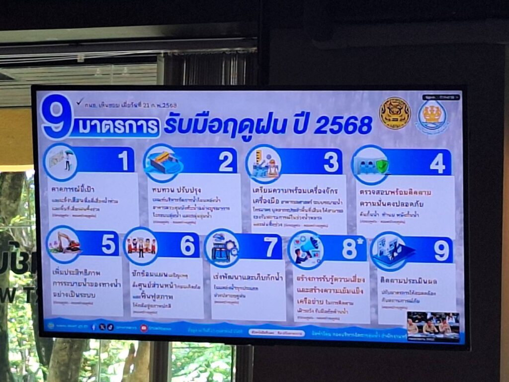 วันที่ 19 พฤษภาคม 2568 เวลา 10.00 น. กรมชลประทาน โดย นายเดช เล็กวิชัย รองอธิบดีฝ่ายบำรุงรักษา กรมชลประทาน เป็นประธานการประชุมคณะอนุกรรมการติดตามและวิเคราะห์แนวโน้มสถานการณ์น้ำ ครั้งที่ 4/2568 ซึ่งเป็นการประชุมครั้งแรกหลังจากที่กรมอุตุนิยมวิทยาประกาศให้ประเทานไทยเข้าสู่ฤดูฝนเมื่อวันที่ 15 พ.ค. 2568 ที่ผ่านมา โดยประชุมผ่านระบบเครือข่าย Video Conference จากห้องประชุมศูนย์ปฏิบัติการน้ำอัจฉริยะ ชั้น 3 อาคาร 99 ปี มล.ชูชาติ กำภู กรมชลประทาน ไปยังสำนักงานชลประทานที่ 1-17 ซึ่งครอบคลุมทั้งประเทศ ในส่วนของ สำนักงานชลประทานที่ 1 (SWOC1) จังหวัดเชียงใหม่ นายอัฏฐวิชย์ นาควัชระ ผู้อำนวยการสำนักงานชลประทานที่ 1 พร้อมด้วย นายอภิวัฒน์ ภูมิไธสง รองผู้อำนวยการสำนักงานชลประทานที่ 1 นายจิรชัย พัฒนพงศา ผู้อำนวยการส่วนบริหารจัดการน้ำและบำรุงรักษา นายถนอมศักดิ์ แก้วดุลย์พันธ์ ผู้อำนวยการส่วนเครื่องจักรกล หัวหน้าฝ่าย และข้าราชการที่เกี่ยวข้อง ร่วมประชุมที่ห้องประชุมศูนย์ปฏิบัติการน้ำอัจฉริยะ สำนักงานชลประทานที่ 1 ถนนทุ่งโฮเตล อ.เมืองเชียงใหม่