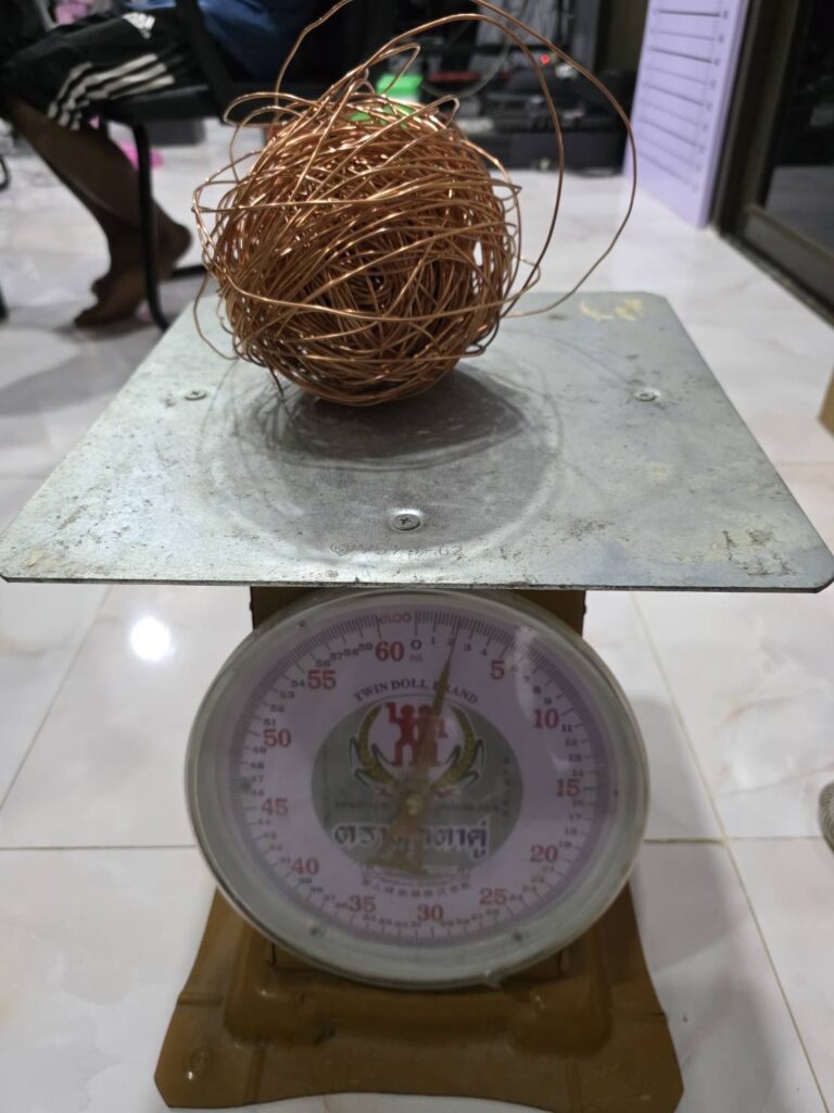 1 -.สายไฟทองแดง จำนวน 3 ขด ขดที่ 1 น้ำหนักประมาณ 2 กิโลกรัม , ขดที่ 2 น้ำหนักประมาณ 0.5 กิโลกรัม,ขดที่ 3 น้ำหนักประมาณ 0.4 กรัม
