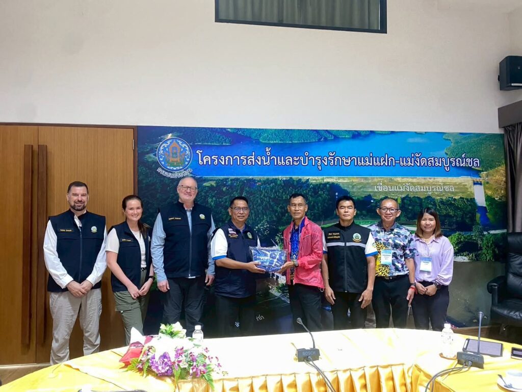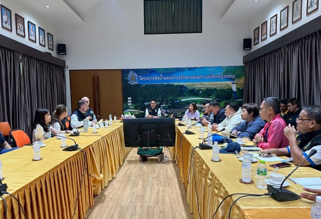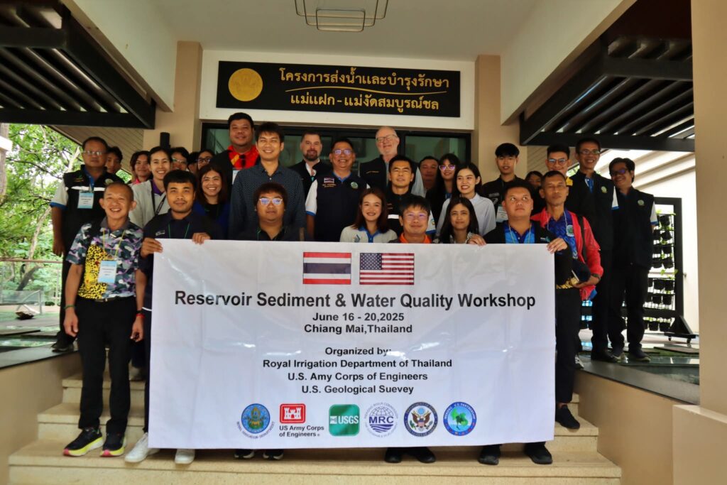 เชียงใหม่-ผอ.โครงการส่งน้ำและบำรุงรักษาแม่แฝก-แม่งัดสมบูรณ์ชล ให้การต้อนรับคณะผู้แทน USACE และ USGS ภายใต้ความร่วมมือไทย-อเมริกา เพื่อแลกเปลี่ยนองค์ความรู้ด้านการจัดการตะกอนและคุณภาพน้ำในอ่างเก็บน้ำ ณ เขื่อนแม่งัดสมบูรณ์ชล จังหวัดเชียงใหม่