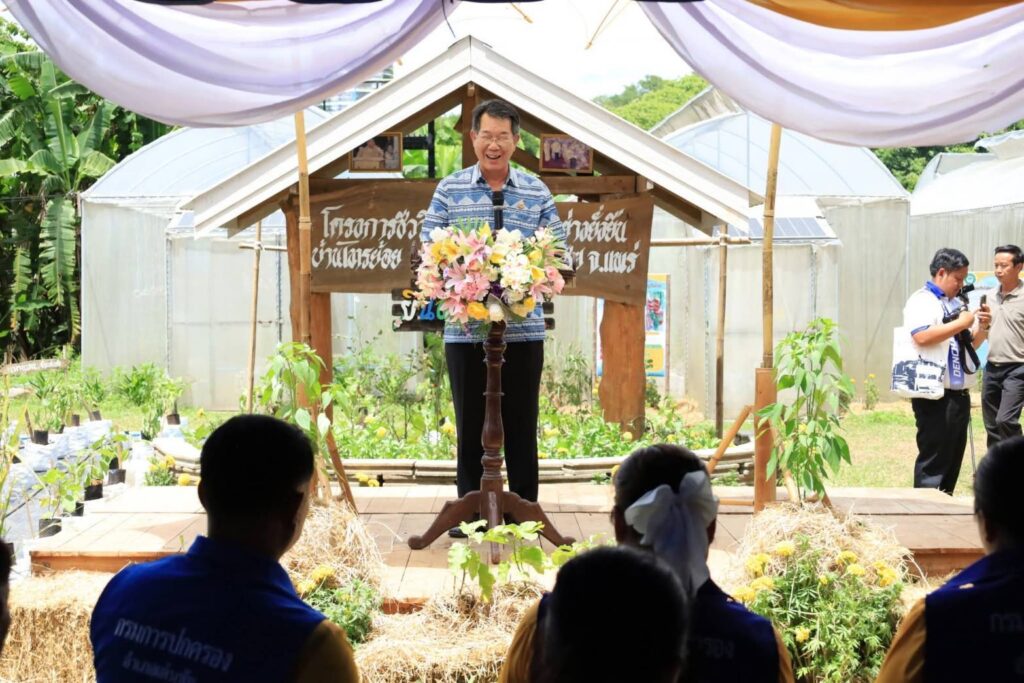 เมื่อวันที่ 19 มิถุนายน 2568 ณ บริเวณโรงเรือนปลูกผักอินทรีย์ กลุ่มวิสาหกิจชุมชนเกษตรอินทรีย์ชีววิถีบ้านไทรย้อย หมู่ที่ 12 ตำบลไทรย้อย อำเภอเด่นชัย นายนำพล โพธิวงศ์ ผู้อำนวยการฝ่ายกลยุทธ์ความยั่งยืน พร้อมด้วยนายฐนดล สังข์ทอง ผู้อำนวยการฝ่ายปฏิบัติการภาคเหนือ ส่งมอบระบบดังกล่าวให้กับจังหวัดแพร่ โดยมี นายสมชัย เลิศประสิทธิพันธ์ ผู้ว่าราชการจังหวัดแพร่ เป็นผู้แทนรับมอบก่อนส่งต่อให้แก่กลุ่มเกษตรกรในพื้นที่