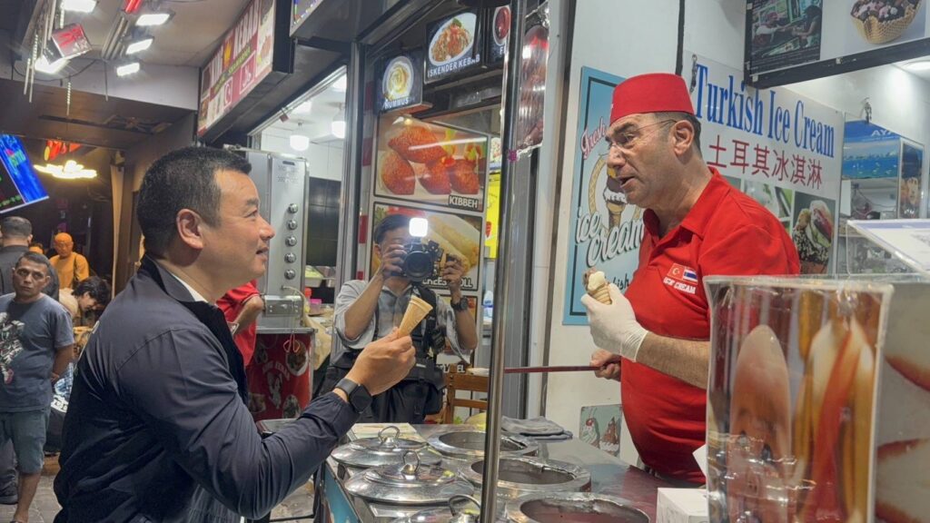 นอกจากนี้ ยังมีผู้ประกอบการและพนักงานออกมาร่วมให้ต้อนรับ มอบดอกไม้เป็นกำลังใจให้กับ รัฐมนตรีว่าการกระทรวงการท่องเที่ยวกีฬา ก่อนจะร่วมกันเดินเท้าพูดคุยประชาสัมพันธ์กับนักท่องเที่ยว พร้อมมอบของที่ระลึก ให้กับนักท่องเที่ยวอีกด้วย