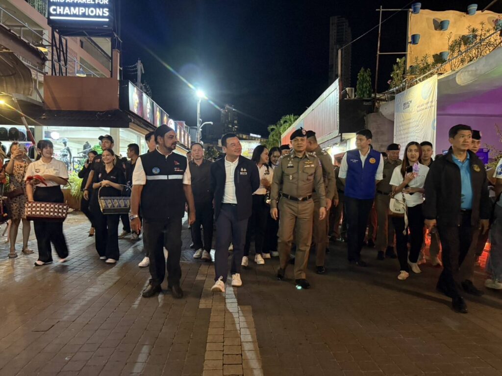 เมื่อเวลา 20.06 น.วันที่ 18 กรกฎาคม 2568 นายสรวงศ์ เทียนทอง รัฐมนตรีว่าการกระทรวงการท่องเที่ยวกีฬา นายพัชรพัชร์ ศรีธัญญนนท์ นายอำเภอบางละมุงพลตำรวจโท ยิ่งยศ เทพจำนงค์ ผู้บัญชาการตำรวจภูธรภาค 2 พลตำรวจโท ศักย์ศิรา เผือกอ่ำ ผู้บัญชาการตำรวจท่องเที่ยว เจ้าหน้าที่ตำรวจท่องเที่ยว เจ้าหน้าที่ตำรวจสภ.เมืองพัทยา เดินตรวจเยี่ยมความเรียบร้อย ของสถานประกอบการ และจุดจอดรถบริการนักท่องเที่ยวเคลื่อนที่ (CCOC Mobile) โดยมุ่งเน้นไปในเรื่องของความปลอดภัยกับนักท่องเที่ยว