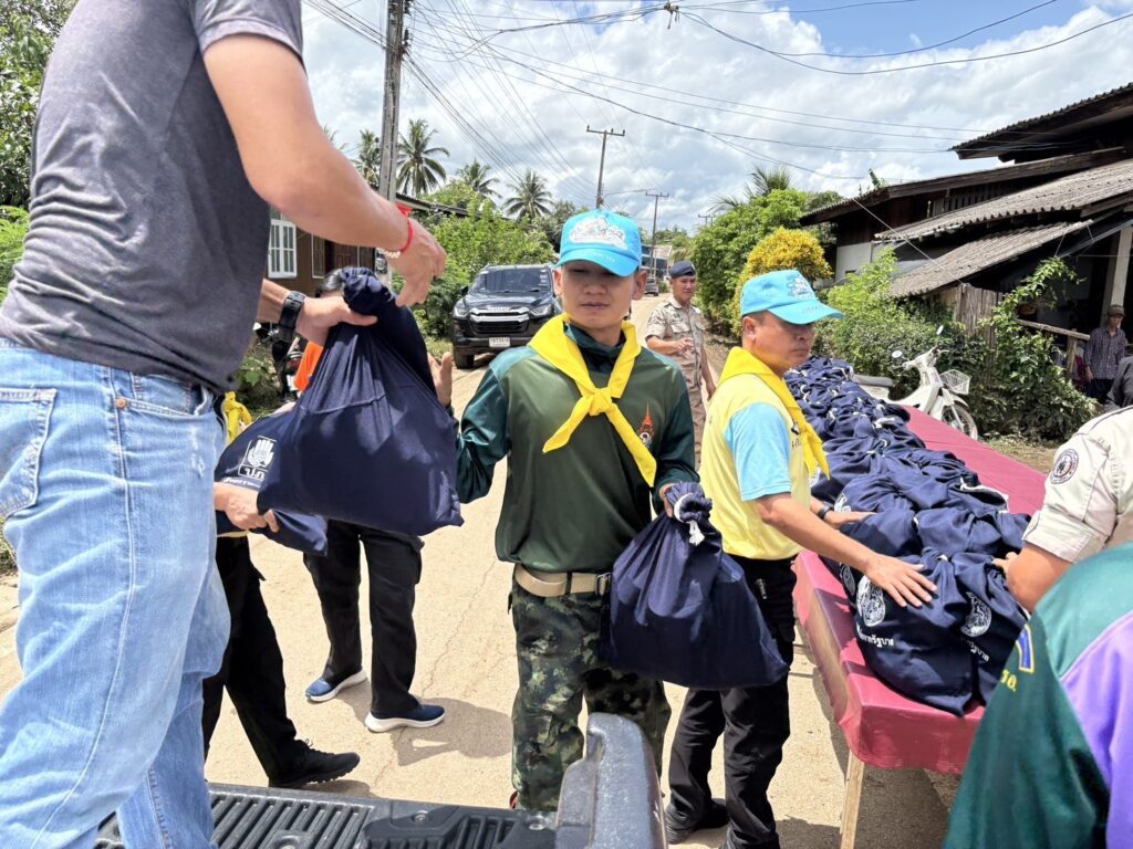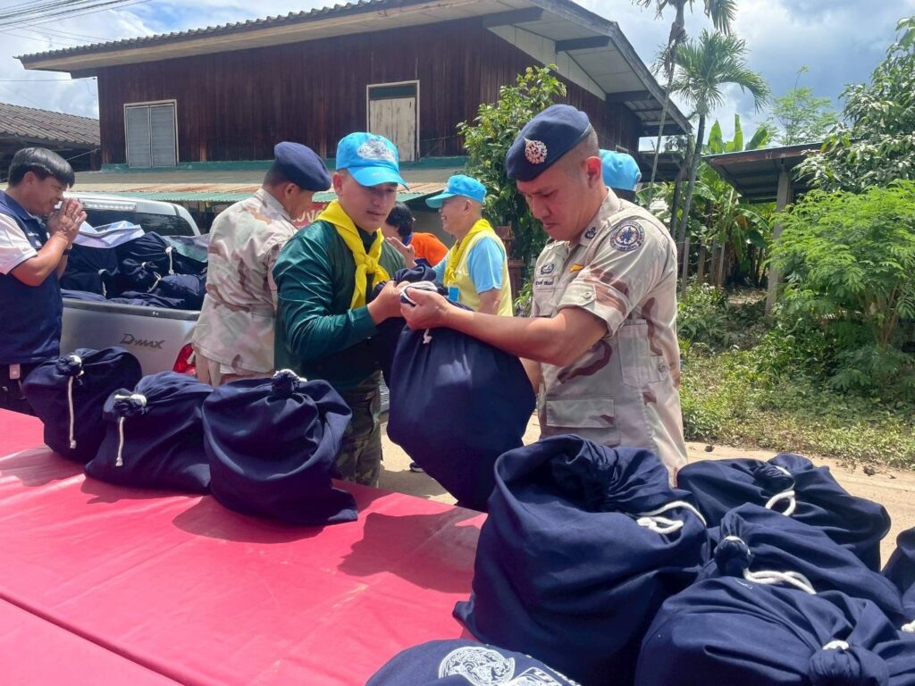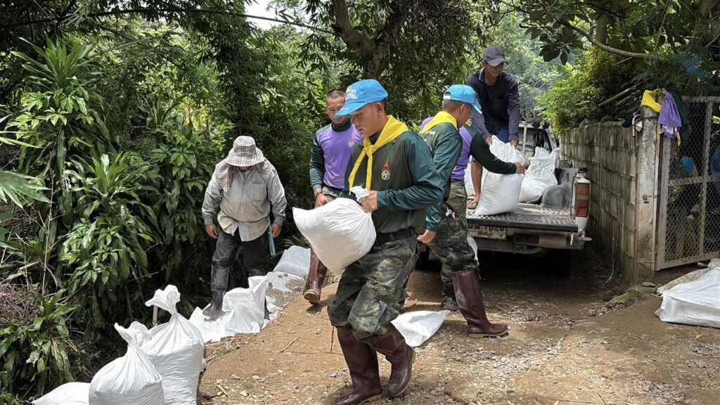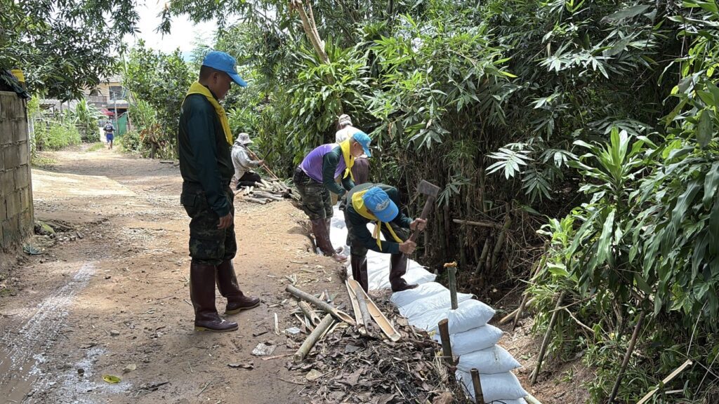เชียงใหม่- จิตอาสาภัยพิบัติพร้อมชุดบรรเทาสาธารณภัยกองพันทหารราบที่ 2 กรมทหารราบที่ 7 บูรณาการหลายหน่วยงาน เร่งบรรจุกระสอบทรายทำแนวกั้นน้ำป้องกันน้ำท่วม และมอบถุงยังชีพให้แก่ผู้ประสบอุทกภัย อำเภอเชียงดาว จังหวัดเชียงใหม่