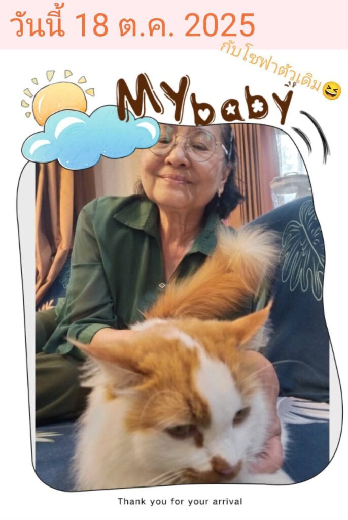 ถูกลักพาตัวอุ้มหายออกไปจากบ้านในหมู่บ้านจัดสรร(ความปลอดภัยสูง รั้วสูง)โดยคนแปลกหน้า ในคืนที่มีงานเลี้ยงสังสรรค์ของคนในหมู่บ้านฯ ความทุกข์ ความห่วงใย ที่มีต่อแมวน้อยไม่เคยจางหายไป ได้ประกาศตามหาก็ไม่มีวี่แวว โชคดีที่แมวน้อยทิ้งลูกชายไว้ให้ดูแลแก้เหงาและคลายความคิดถึงห่วงใยลงได้บ้าง จน5ปีต่อมา(2025) ได้เจอเพจเฟสบุ๊ค “อยู่เชียงใหม่” แนะนำร้านกาแฟแมวจร ชื่อร้าน “Cat’s alley cafe”(แถวหนองหอย) ที่เก็บแมวจรมาเลี้ยง ลงรูปแมวน้อย อันมีหน้าตาเป็นเอกลักษณ์ และสูงวัยมากขึ้นตามลำดับ ความปิติดีใจที่จะได้พบเจอลูกสาวที่พลัดพราก ทำให้นอนไม่หลับทั้งคืน ตื่นเต้นดีใจที่จะได้ไปรับลูกสาวแมวน้อยกลับบ้านเรา ต้องขอขอบคุณเพจเฟสบุ๊ค “อยู่เชียงใหม่” และ “Cat’s alley cafe”ที่ได้อุปการะไว้ และดูแลอย่างดี ทำให้วันนี้เป็นวันแห่งความสุขมากๆ ที่ได้พบเจอลูกสาวแมวน้อยที่พลัดพรากสูญหายจากกันไปนานถึง 5ปี