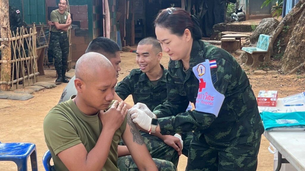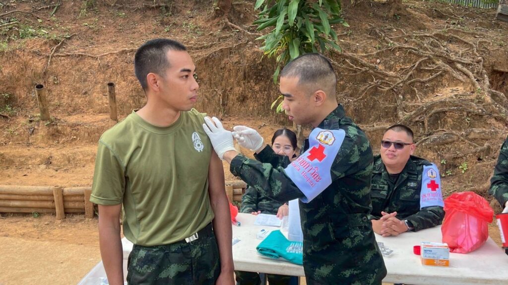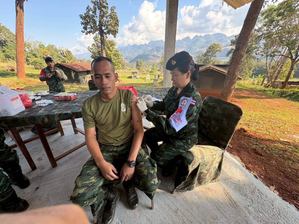 พร้อมกันนี้ ทีมแพทย์ยังได้ให้ความรู้เกี่ยวกับโรคที่พบบ่อยในพื้นที่ชายแดน เช่น โรคมาลาเรีย และโรคไข้เลือดออก รวมถึงแนวทางการป้องกันโรคติดต่อที่มียุงและสัตว์พาหะเป็นสาเหตุ และได้ดำเนินการฉีดวัคซีนป้องกันโรคไข้หวัดใหญ่ให้แก่กำลังพล จำนวน 121 นาย เพื่อเสริมสร้างภูมิคุ้มกัน ลดความเสี่ยงต่อการเจ็บป่วยระหว่างปฏิบัติหน้าที่ หากพบกำลังพลที่มีภาวะเสี่ยงจะได้รับคำแนะนำและเข้าสู่กระบวนการดูแลรักษาอย่างเหมาะสมต่อไป