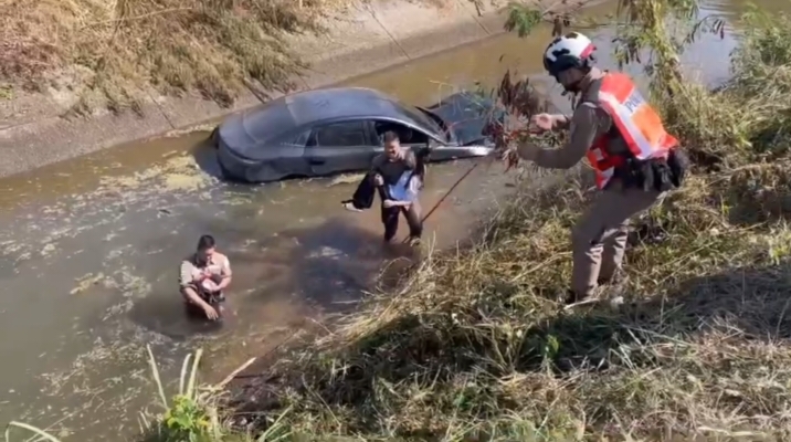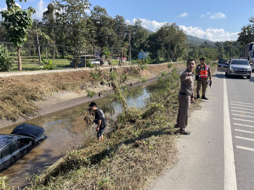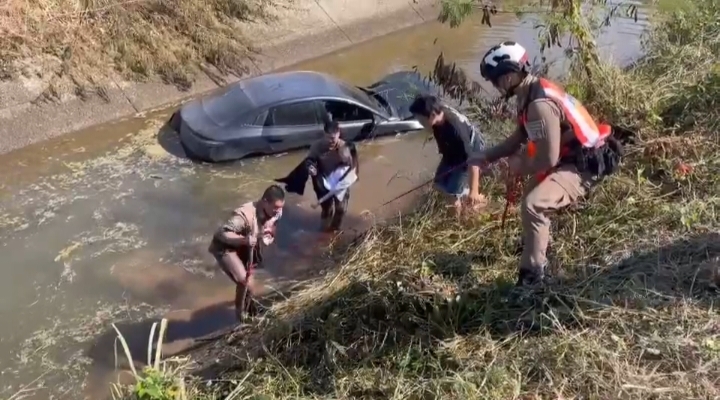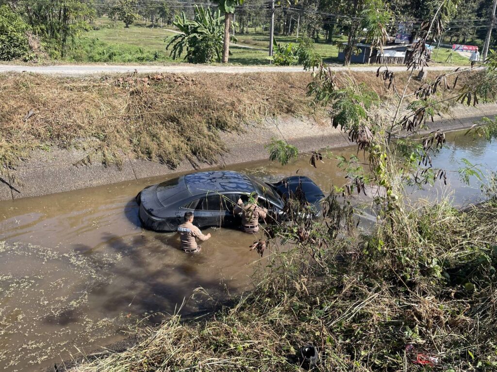 (มีคลิป)เชียงใหม่-ตร.ดอยสะเก็ด ออกตรวจพื้นที่ภายในเขต พบรถยนต์เก๋ง ตกลงไปในคลองชลประทาน รีบลงช่วยเหลือรอดหวุดหวิด!!!