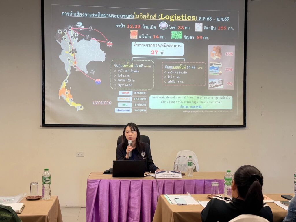ปปส.ภาค 5 นำโดย นางสาวอัญญารัตน์ มาจันทร์ ผู้อำนวยการส่วนวิเคราะห์ข่าวและเฝ้าระวัง ดำเนินโครงการประชุมเชิงปฏิบัติการเสริมสร้างประสิทธิภาพและสร้างเครือข่ายด้านการข่าวผู้ประกอบการขนส่งสินค้าและพัสดุภัณฑ์ (Logistics) ในพื้นที่จังหวัดเชียงราย ระหว่างวันที่ 16–18 มีนาคม 2569 ครอบคลุม 3 กลุ่มพื้นที่ โดยมีผู้เข้าร่วมจากภาครัฐ ภาคเอกชน และหน่วยงานด้านความมั่นคง เข้าร่วมจำนวนทั้งสิ้น 257 คน