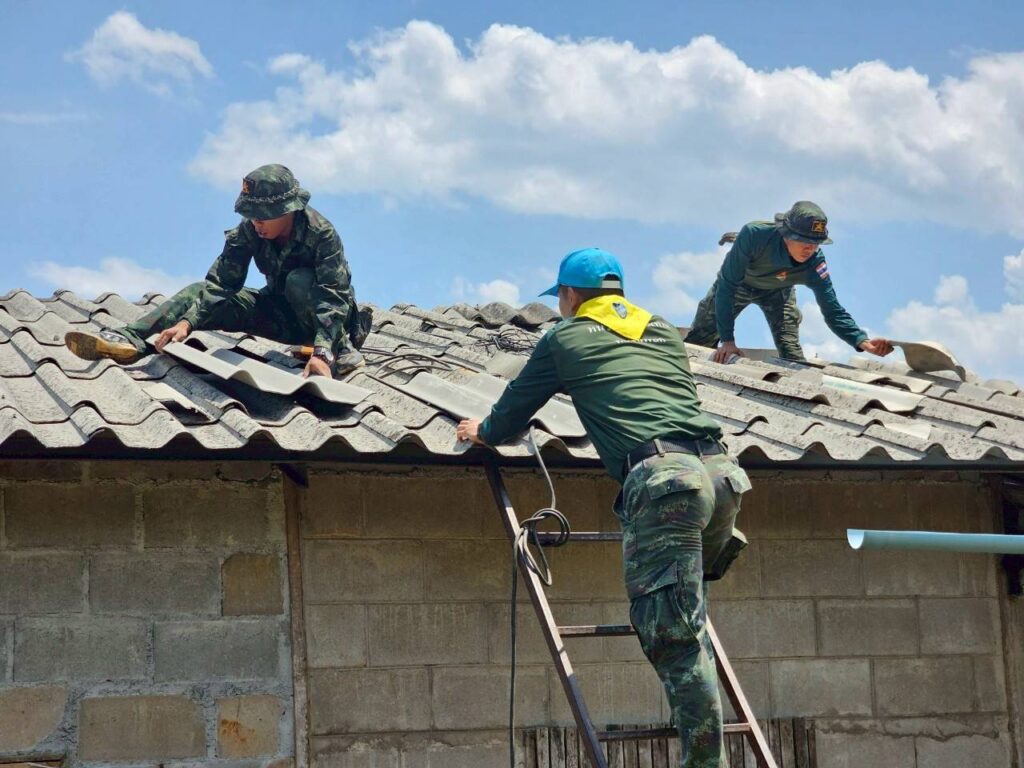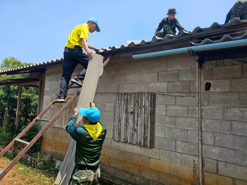 เชียงใหม่-กกล.ผาเมือง/กอ.รมน.ภาค 3 สย.2 ซ่อมแซมบ้านเรือนประชาชนที่ได้รับความเสียหายจากวาตภัย ในพื้นที่ อ.ฝาง จว.ช.ม.