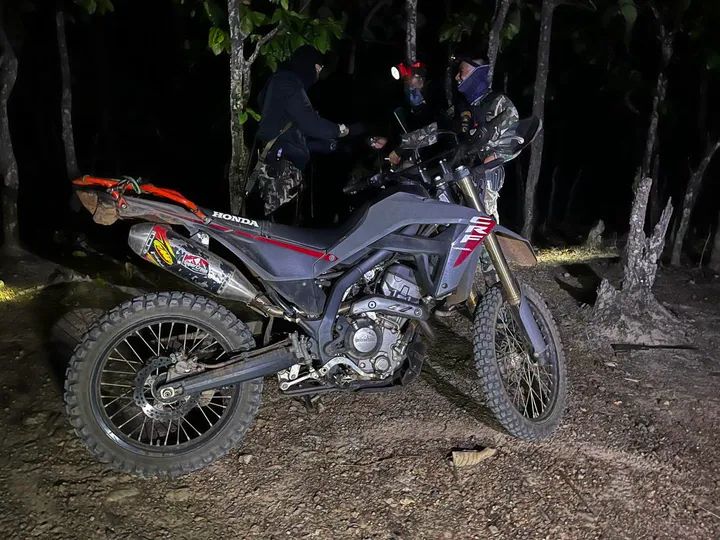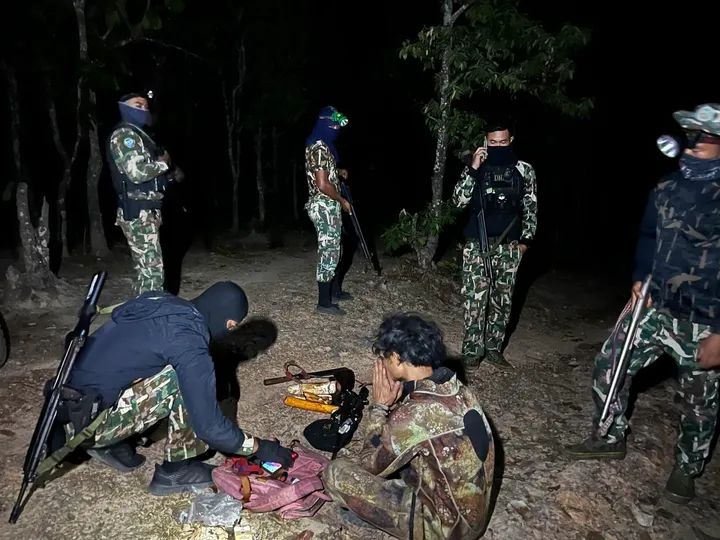 ต่อมาเวลาประมาณ 01.30 น. คณะพนักงานเจ้าหน้าที่ตรวจพบแสงไฟรถจักรยานยนต์ จำนวน 2 คัน ห่างจากจุดที่เจ้าหน้าที่กำลังเดินลาดตระเวนอยู่ระยะห่างประมาณ 900 เมตร กำลังขับขี่มาตามถนนลำลอง ในพื้นที่ป่าเขตอุทยานแห่งชาติผาแดง มุ่งหน้ากลับเข้าไปยังหมู่บ้านแกน้อย ซึ่งจุดที่พบแสงไฟรถจักรยานยนต์นั้น ใกล้เคียงกับบริเวณที่ได้รับแจ้งจุดความร้อน (Hotspot) เมื่อวันที่ 19 เมษายน 2569 จำนวน 2 จุด ช่วงเวลา 02.18 น. ระยะห่างประมาณ 400 เมตร เจ้าหน้าที่จึงได้กระจายกำลังดักซุ่มเพื่อรอทำการตรวจสอบ บริเวณพิกัด 47 Q 477306 E 2173154 N เมื่อรถจักรยานยนต์ทั้ง 2 คันขับขี่มาใกล้ถึงบริเวณที่เจ้าหน้าที่ดักซุ่มอยู่ พบว่าเป็นบุคคลเพศชาย จำนวน 2 คน สะพายอาวุธปืนคนละ 1 กระบอก คาดว่าชายทั้งสองอาจสังเกตุเห็นเจ้าหน้าที่ที่กำลังดักซุ่มอยู่ เกิดไหวตัว ได้เลี้ยวรถจักรยานยนต์ขับขี่หลบหนีกลับเข้าไปในพื้นที่ป่าอย่างรวดเร็ว เจ้าหน้าที่พยายามวิ่งไล่ตามไป กระทั่งสามารถจับกุมผู้ต้องหาได้ 1 ราย พร้อมรถจักรยานยนต์ จำนวน 1 คัน ส่วนผู้ต้องหาอีก 1 ราย สามารถหนีการจับกุมไปได้