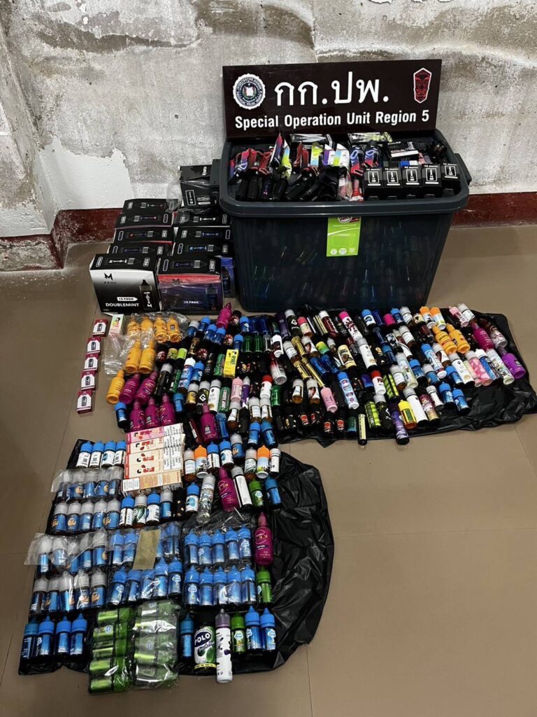 เมื่อเวลา 10.00 น.วันที่ 20 พ.ค.68 โดยการอำนายการสั่งการของ พล.ต.ท.กฤตธาพล ยี่สาคร ผบช.ถ.5 ,พล.ต.ต.วีพงศ์ คำลือ ผบก.สส.ภ.5 ,พล.ต.ต.ยุทธนา แก่นจันทร์ ผบก.ภ.จว.เชียงใหม่ พ.ต.อ.มนตรี ภูมิสอาด .ผกก.ปพ.บก.สส.ภ.5 นำเจ้าหน้าที่ชุดปฏิบัติการสืบสวนกก.ปพ.บก.สส.ภ.5 ได้ทำการจับกุมตัวนางสาวศุทชา อายุ 25 ปี บ้านอยู่ ต.พิชัย อ.เมืองลำปาง จ.ลำปาง พร้อมของกลางบุหรี่ไฟฟ้าแบบใช้แล้วทิ้ง ยี่ห้อ M BAR9K จำนวน 1 อัน .บุหรี่ไฟฟ้าแบบใช้แล้วทิ้ง ยี่ห้อ M BAR9K จำนวน 25 อันเครื่องบุหรี่ไฟฟ้าชนิดเปลี่ยนหัวได้ จำนวน 14 อันน้ำยาเติมบุหรี่ไฟฟ้า จำนวน 241 อันกล่องบุหรี่ไฟฟ้า จำนวน 17 อันบัญชีรายการขายบุหรี่ไฟฟ้า จำนวน 16 แผ่น นำตัวดำเนินคดีข้อหา”ช่วยซ่อนเร้น ช่วยจำหน่าย ซื้อ รับไว้ โดยประการใด ซึ่งบุหรี่ไฟฟ้าเป็นสินค้าต้องห้ามของอันตนพึงรู้ว่าเป็นความผิด” ตามมาตรา 246 ตามพระราชบัญญัติศุลกากร พ.ศ.2560