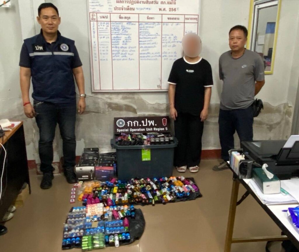 เชียงใหม่-ตำรวจภูธรภาค 5 ระดมกวาดล้าง รวบสาวเปิดเพจขายบุหรี่ไฟฟ้าพร้อมของกลางดำเนินคดี