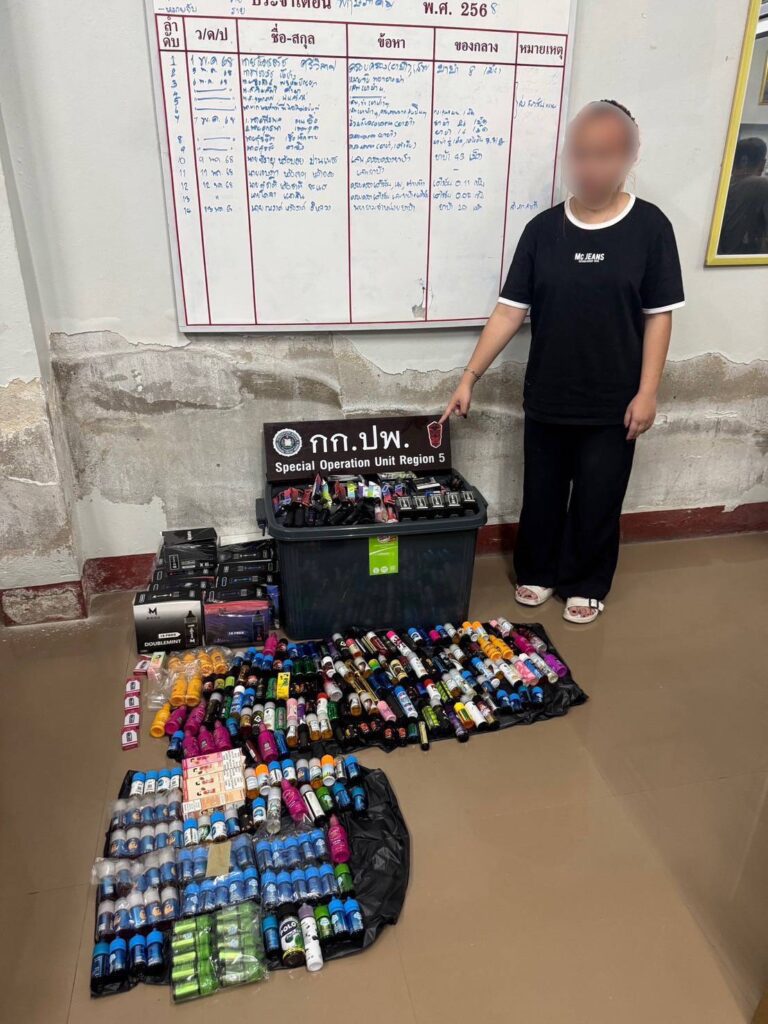 เชียงใหม่-ตำรวจภูธรภาค 5 ระดมกวาดล้าง รวบสาวเปิดเพจขายบุหรี่ไฟฟ้าพร้อมของกลางดำเนินคดี