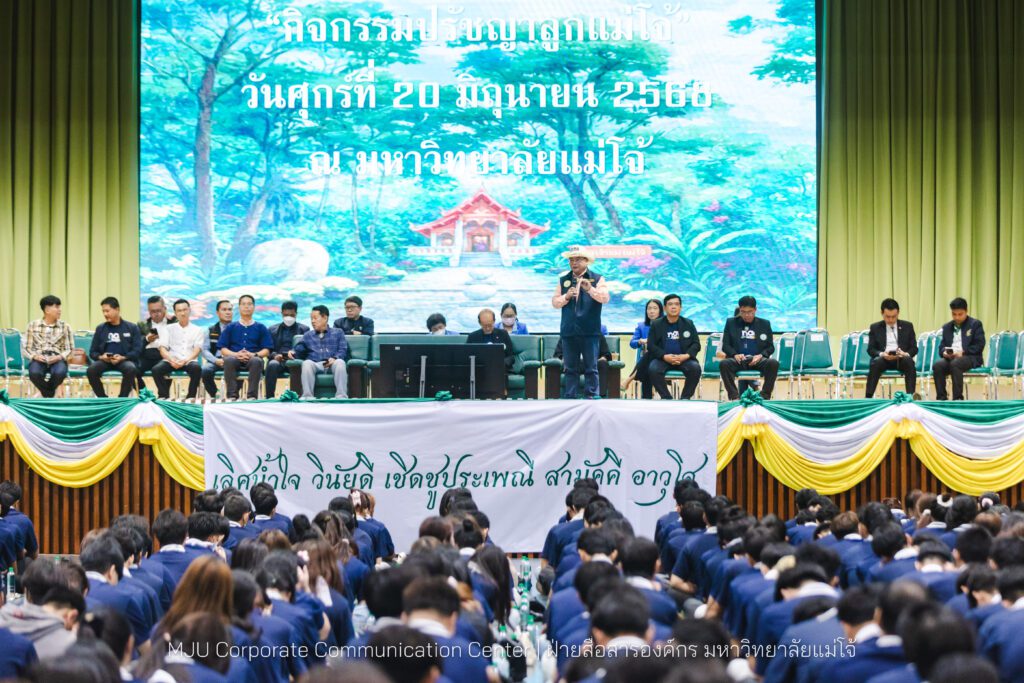 วันศุกร์ที่ 20 มิถุนายน 2568 รองศาสตราจารย์ ดร.วีระพล ทองมา อธิการบดีมหาวิทยาลัยแม่โจ้ (แม่โจ้รุ่น 49) เป็นประธานในพิธีเปิดกิจกรรม เรียนรู้ปรัชญาลูกแม่โจ้ พร้อมให้โอวาทและบรรยายพิเศษ ปรัชญาลูกแม่โจ้ “เลิศน้ำใจ วินัยดี เชิดชูประเพณี สามัคคี อาวุโส” โอกาสเดียวกันนี้ ดร.ขุนศรี ทองย้อย นายกสมาคมศิษย์เก่าแม่โจ้ (แม่โจ้รุ่น 51) บรรยายพิเศษ คติพจน์ “มาก่อนเป็นพี่ มาทีหลังเป็นน้อง มาพร้อมกันเป็นเพื่อน” ให้กับนักศึกษาใหม่ โดยมีคณะผู้บริหาร คณาจารย์ เข้าร่วมกิจกรรมและให้กำลังใจแก่นักศึกษาใหม่แม่โจ้ รุ่น 90