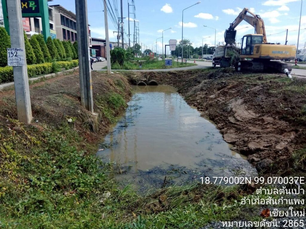 เชียงใหม่-โครงการส่งน้ำและบำรุงรักษาแม่กวงอุดมธารา ลงพื้นที่ร่วมกับองค์การบริหารส่วนจังหวัดเชียงใหม่ ดำเนินการกำจัดวัชพืชและขุดลอกลำเหมืองสาธารณะ พื้นที่ตำบลตลาดใหญ่ ตำบลสำราญราษฎร์ ตำบลสันปูเลย อำเภอดอยสะเก็ด ตำบลต้นเปา อำเภอสันกำแพง จังหวัดเชียงใหม่ รวมระยะทางทั้งสิ้น 6.03 กิโลเมตร
