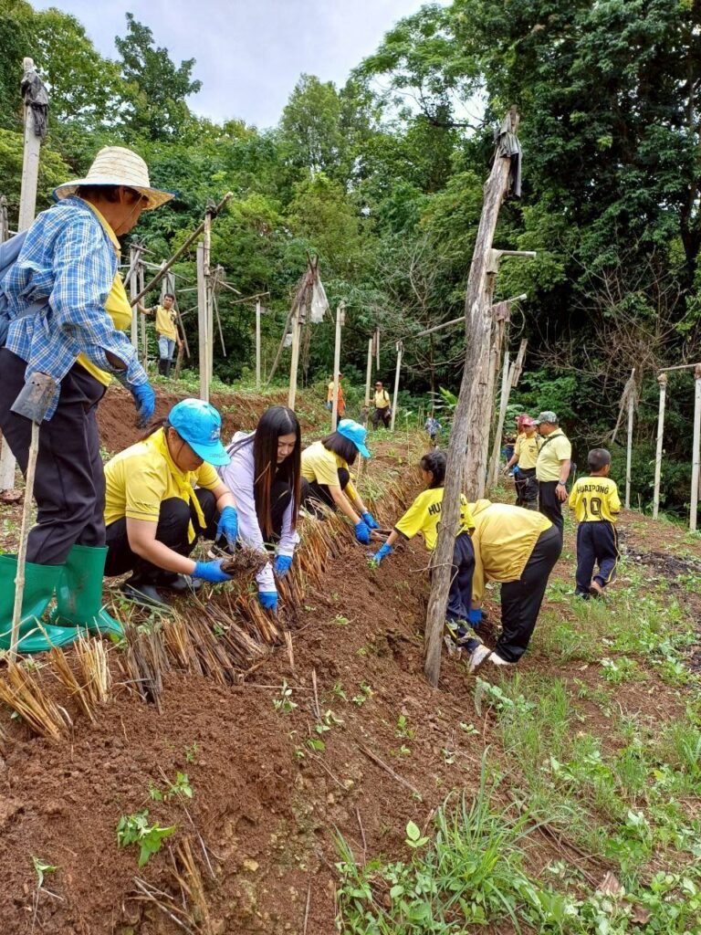 นอกจากนี้ นางสาวสุภาวดี บุญธรรม นักวิชาการเกษตรชำนาญการพิเศษ หัวหน้าปฎิบัตการพัฒนาที่ดินที่ 1 และเจ้าหน้าที่ ร่วมกิจกรรมปลูกป่าเฉลิมพระเกียรติฯ ประจำปี 2568 และร่วมปลูกหญ้าแฝกในพื้นที่เสี่ยงดินถล่มบริเวณไหล่ถนนในพื้นที่ศูนย์พัฒนาโครงการหลวงแม่ปูนหลวง โดยมีนายพงศ์ศักดิ์ เพชรคงแก้ว นายอำเภอเวียงป่าเป้า เป็นประธานเปิดงาน มีหน่วยงานราชการ องค์กรบริหารส่วนท้องถิ่น ประชาชนจิตอาสา และนักเรียนเข้าร่วมงาน ประมาณ 300 ราย บริเวณพื้นที่ป่าต้นน้ำแม่ปูนหลวง ณ ศูนย์พัฒนาโครงการหลวงแม่ปูนหลวง ตำบลเวียง อำเภอเวียงป่าเป้า จังหวัดเชียงราย เมื่อวันศุกร์ที่ 18 กรกฎาคม 2568 เพื่อเฉลิมพระเกียรติพระบาทสมเด็จพระเจ้าอยู่หัว เนื่องในโอกาสมหามงคลเฉลิมพระชนมพรรษา 73 พรรษา และเพื่อฟื้นฟูความอุดมสมบูรณ์ของป่าไม้ ด้วยการสร้างพื้นที่สีเขียว สร้างระบบนิเวศให้สมดุล อันเป็นการแสดงถึงความจงรักภักดีของเจ้าหน้าที่รัฐ ผู้แทนชุมชน เกษตรกร และเยาวชนในพื้นที่