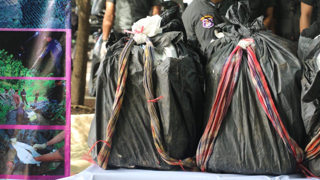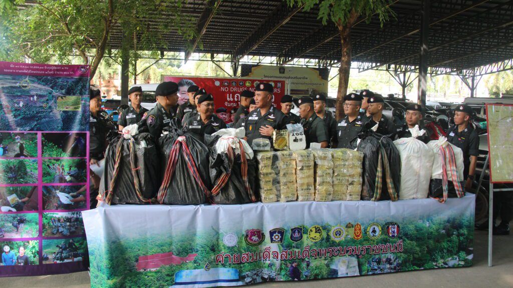 หลังจากนั้นนายภูมิธรรมฯ ได้ร่วมแถลงข่าวยึด ‘ไอซ์’ 700 กิโลกรัม อ.เชียงดาว จ.เชียงใหม่ โดยการจับกุมครั้งนี้เป็นผลจากการทำงานเชิงรุกตามนโยบายปราบปรามยาเสพติดของรัฐบาล โดยเมื่อวันที่ 16 สิงหาคม 2568 เจ้าหน้าที่ตำรวจตระเวนชายแดนภาค 3 ได้รับแจ้งเบาะแสสำคัญว่าจะมีขบวนการค้ายาเสพติดลำเลียงยาเสพติดจำนวนมหาศาลเข้ามาในพื้นที่ตอนในของประเทศ จึงได้สนธิกำลังกับตำรวจ ทหาร และฝ่ายปกครองในพื้นที่ เพื่อวางแผนสกัดกั้นอย่างรัดกุม จนกระทั่งเวลาประมาณ 02.00 น. ของวันที่ 18 สิงหาคม 2568 ชุดปฏิบัติการได้พบรถยนต์ต้องสงสัยขับออกมาจากสวนในหมู่บ้านป่าบงงาม ต.เมืองนะ อ.เชียงดาว จึงเข้าควบคุมรถและจับกุมตัวนายดำรัส อายุ 33 ปี ผู้ขับขี่ได้สำเร็จ ขณะเดียวกัน เจ้าหน้าที่อีกชุดเข้าตรวจสอบในสวนที่ได้รับแจ้ง พบกระสอบบรรจุยาเสพติดจำนวน 28 กระสอบ ซุกซ่อนอยู่ในกอต้นกล้วย ซึ่งถูกอำพรางด้วยผ้าใบสีดำและกิ่งไม้เพื่อหลีกเลี่ยงการตรวจจับ ของกลางทั้งหมดเป็นยาไอซ์รวมกว่า 700 กิโลกรัม นอกจากนี้ ยังพบรถจักรยานยนต์อีก 2 คันจอดทิ้งไว้ในบริเวณใกล้เคียง โดยนายภูมิธรรมได้ลงมายังจุดแถลงข่าวด้านล่างเพื่อชื่นชมเจ้าหน้าที่ตำรวจตระเวนชายแดนภาค 3 ชุดจับกุมที่ปฏิบัติหน้าที่อย่างเข้มแข็งจนมีผลงานชิ้นใหญ่ในครั้งนี้