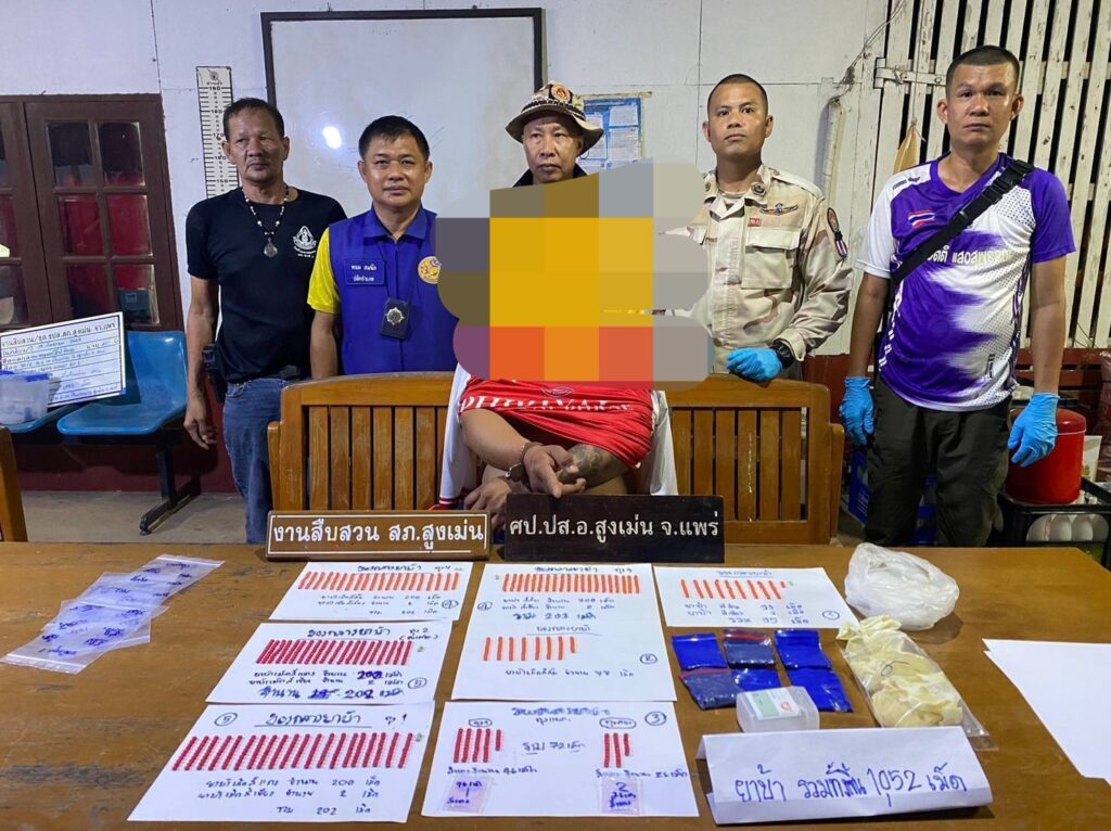 ศป.ปส.อ.สูงเม่น “สั่งสนธิกำลัง” ชุดสืบสวนฯ จับกุมเครือข่ายผู้ค้ายาเสพติด พร้อมของกลาง ส่งดำเนินคดี