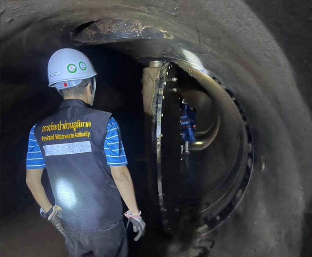 วันจันทร์ที่ 20 ตุลาคม 2568 เวลา 10.30 น. นายเฉลิมเกียรติ อินทกนก ผู้อำนวยการโครงการส่งน้ำและบำรุงรักษาแม่กวงอุดมธารา มอบหมายให้ นายอนุรักษ์ เปี้ยกาวี หัวหน้าฝ่ายช่างกล เป็นผู้แทน พร้อมด้วยเจ้าหน้าที่โครงการลงพื้นที่ร่วมกับนายสมควร ทาปิน ผู้ช่วยผู้จัดการ การประปาส่วนภูมิภาคสาขาเชียงใหม่(ชั้นพิเศษ) ว่าที่ ร.ต.กิตติพงศ์ ศรีพราย หัวหน้างานผลิต การประปาส่วนภูมิภาคสาขาเชียงใหม่ (ชั้นพิเศษ) นายธีรพงศ์ ละออ วิศวกร 7 งานผลิต การประป่าส่วนภูมิภาคสาขาเชียงใหม่ (ชั้นพิเศษ) นายณัฐวรท วรรณภีร์ หัวหน้างานแหล่งน้ำ การประปาส่วนภูมิภาคเขต 9 และนายวัชพล กัญมี วิศวกร 7 งานแหล่งน้ำ การประปาส่วนภูมิภาคเขต 9 ลงพื้นที่สำรวจความเสียหายบริเวณท่อส่งน้ำดิบใต้ดินขนาด 700 มม. ของอาคารท่อส่งน้ำคลองส่งน้ำสายใหญ่ฝั่งซ้าย (ตามที่โครงการส่งน้ำและบำรุงรักษาแม่กวงอุดมธารา ได้ทำหนังสือแจ้งให้ดำเนินการตรวจสอบจุดน้ำรั่วของอาคารควบคุมเขื่อนฝั่งซ้าย) พบว่าบริเวณท่อส่งน้ำดิบใต้ดินขนาด 700 มม. มีรอยรั่วบริเวณด้านล่างท่อส่งน้ำ จำนวน 2 จุด