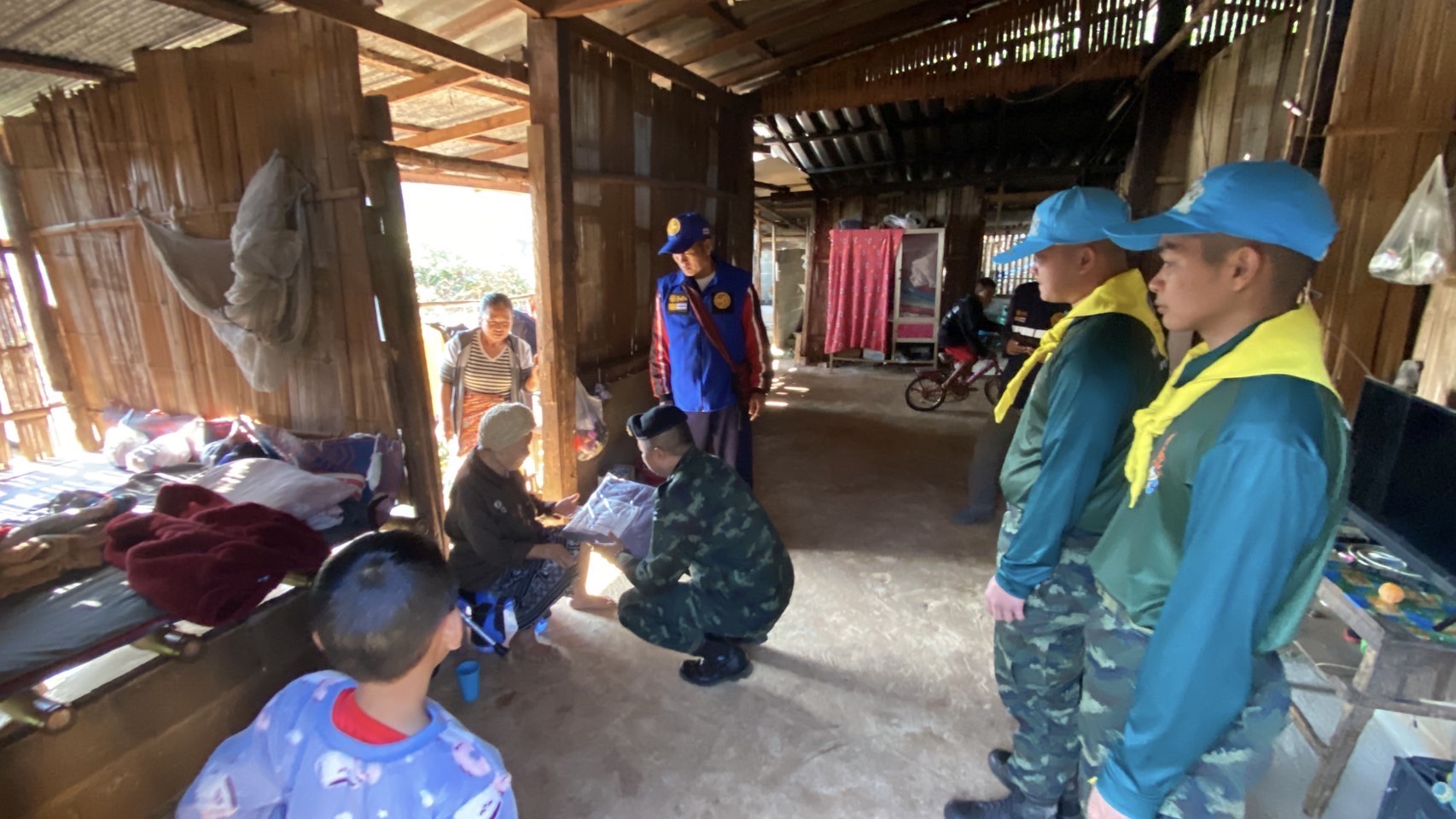 เมื่อวันที่ 21 ม.ค. 68 เวลา 09.00 น. กกล.ผาเมือง โดย บก.ผาแด่น ฉก.ทัพเจ้าตาก จัดกำลังพลจิตอาสาพระราชทาน ร่วมกับ นายชุมพล เรืองโสภณต์ ผญบ.บ้านเดื่อ หมู่ที่ 6ฯ ลงพื้นที่มอบผ้าห่มกันหนาว ให้กับ ประชาชนกลุ่มเปราะบาง ผู้สูงอายุ ผู้ยากไร้ ผู้พิการ จำนวน 7 ราย เพื่อช่วยบรรเทาความเดือดร้อนในช่วงฤดูหนาว และสร้างความสัมพันธ์อันดีกับประชาชนในพื้นที่ ณ บ้านผาเดื่อ หมู่ที่ 6 ต. แม่สลองใน อ.แม่ฟ้าหลวง จว.ช.ร.