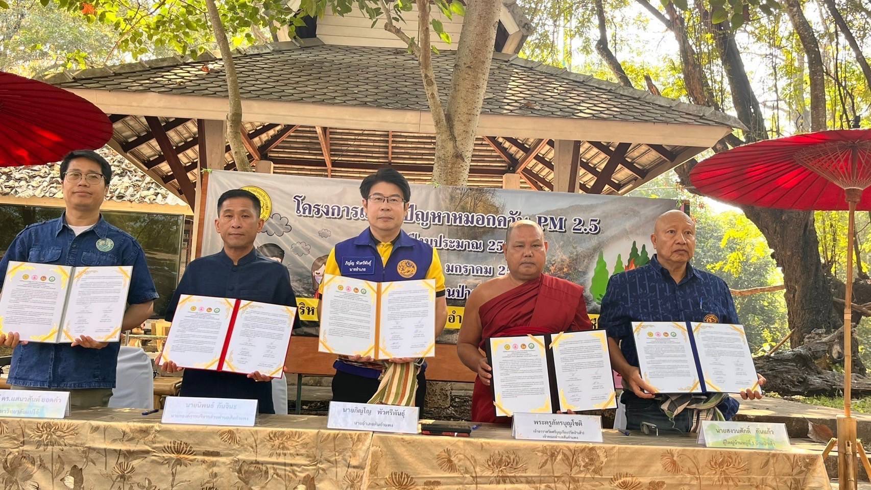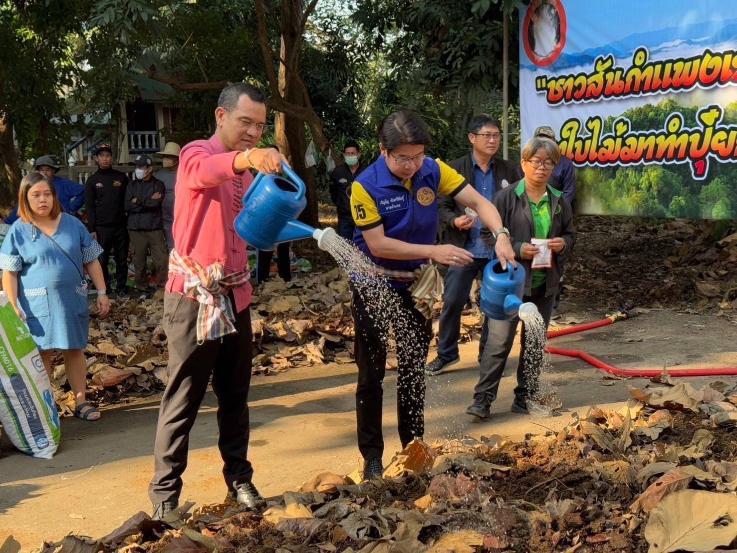 สำหรับกิจกรรมวันนี้ เป็นการอบรมให้ความรู้เกี่ยวกับไฟป่า หมอกควัน พร้อมกับได้มีการร่วมกันทำปุ๋ยหมักจากใบไม้ ทำน้ำหมักจุลินทรีย์ นอกจากนี้ยังมีการทำ MOU ร่วมกันระหว่างหน่วยงานภาครัฐ ผู้นำชุมชน มหาวิทยาลัยแม่โจ้ และคณะสงฆ์ และกิจกรรม Kick Off เดินหน้าเข้าหาไฟ ลดการเผา อำเภอสันกำแพง โดยสาธิตวิธีการไถกลบแทนการเผา และการหว่านเมล็ดปอเทืองบริเวณที่ไถกลบ เพื่อเป็นปุ๋ยพืชสด เตรียมพื้นที่เพื่อใช้ในการทำนาต่อไป