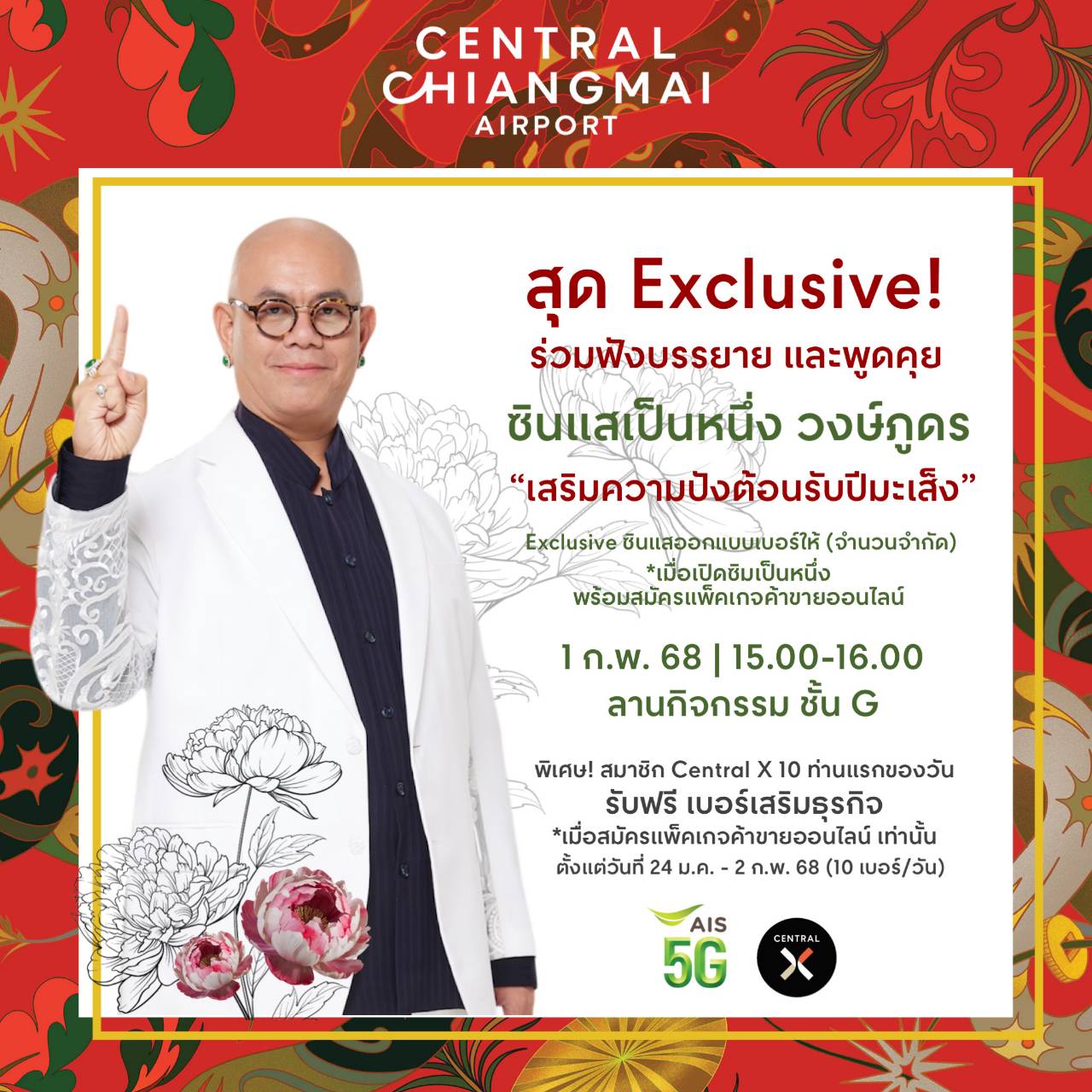 ศูนย์การค้าเซ็นทรัล เชียงใหม่ แอร์พอร์ต ร่วมฉลองเทศกาลตรุษจีนสุดยิ่งใหญ่ รับตรุษจีนปีมะเส็ง พร้อมกิจกรรมเสริมความเฮงและความปังมากมายใน “The Great Chinese New Year 2025” พบกับจุด check-in งูหยก ในสวนโคมไฟดอกไม้มงคล 8 ชนิด กลางศูนย์การค้า พร้อมซุ้มโคมไฟจีน แสงสว่างแห่งมงคลยาวกว่า 18 เมตร , ช้อปความปังในตลาดจีนสุดคลาสสิก ทั้งของไหว้ อาหารมงคล สินค้าสายมู และบูธกิจกรรมดูดวงเบอร์มงคล พร้อมสักการะเทพเจ้าไฉ่ซิงเอี้ย เพื่อความเป็นสิริมงคล , กิจกรรม DIY Workshop โคมไฟมงคล โดย Central Family Club และรับชมการแสดงวัฒนธรรมจีนตลอดการจัดงาน
