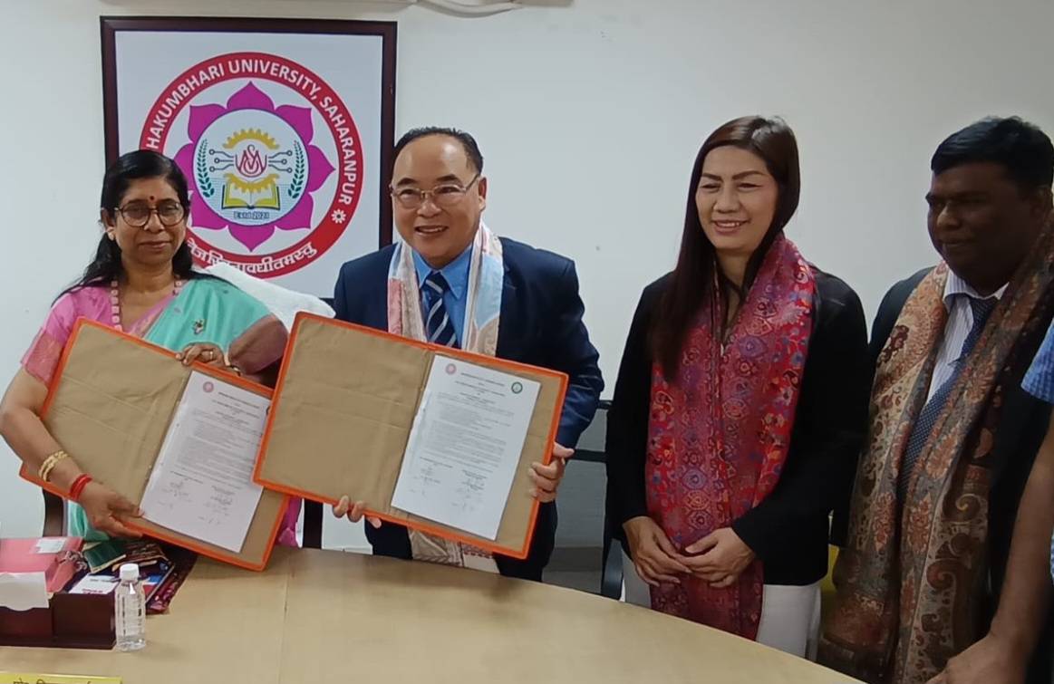 จากนั้น มีพิธีลงนามตกลงความร่วมมือทางวิชาการ (MoU) ระหว่างมหาวิทยาลัยแม่โจ้ ประเทศไทย กับ Chaudhary Charan Singh University และ Maa Shakumbhari University ประเทศอินเดีย เพื่อร่วมแลกเปลี่ยนนักศึกษาและนักวิจัย การจัดกิจกรรมทางการเรียนการสอนและเครือข่ายงานวิจัยระดับนานาชาติ เช่น การจัดฝึกอบรมระยะสั้น โปรแกรมการเรียนการสอนร่วมแบบออนไซต์/ออนไลน์ สร้างเครือข่ายสถาบันการศึกษาในต่างประเทศ มุ่งสู่ความเป็นนานาชาติ