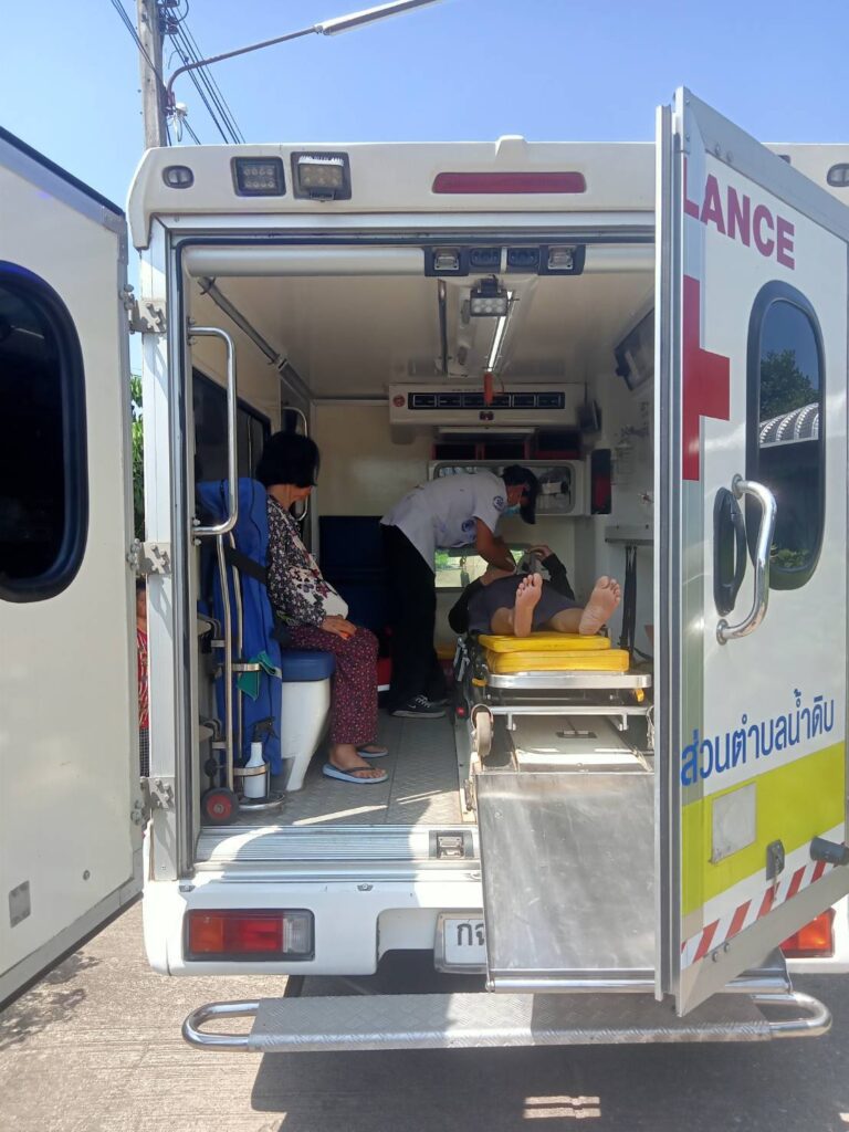 ที่บ้านน้ำดิบเหนือออกตรวจสอบเป็นชาย 1 รายรู้สึกตัวดีมีบาดแผลบริเวณศีรษะจึงทำการปฐมพยาบาลเบื้องต้นแล้วนำส่งโรงพยาบาลป่าซาง