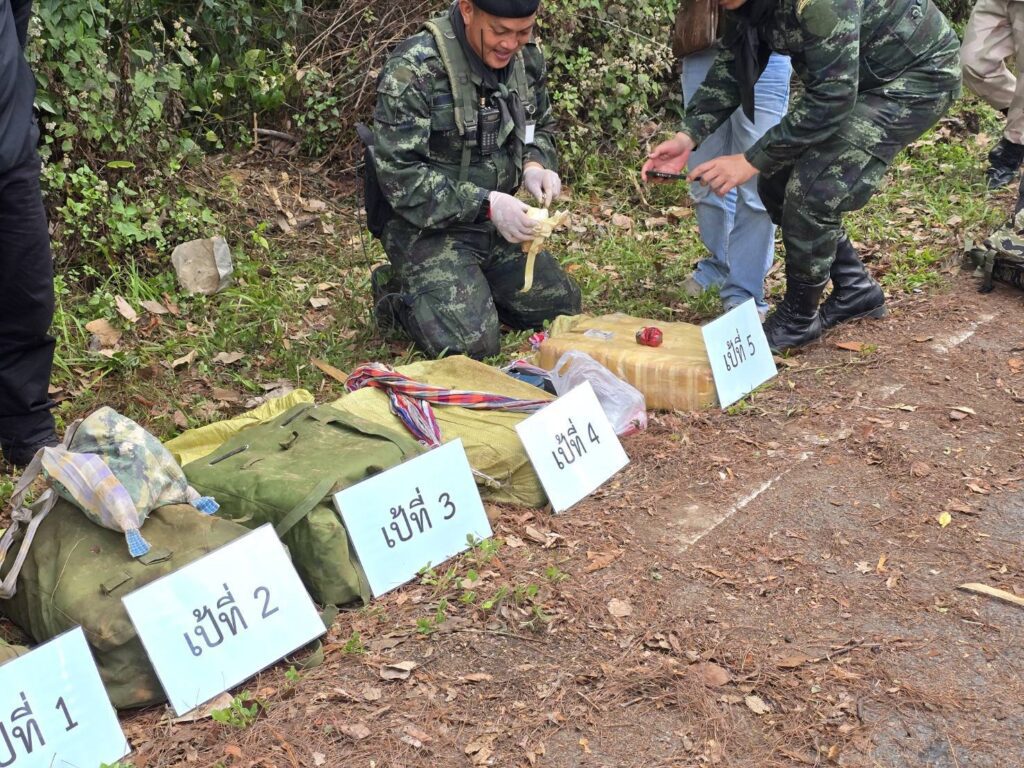 เมื่อวันที่ 20 เมษายน 2568 เวลา 02.30 น.กองร้อยทหารม้าที่ 3 หน่วยเฉพาะกิจไชยานุภาพ จัดกำลังพล ร่วมกับ หมวดสกัดกั้น กองกำลังผาเมือง และ ชุดปฏิบัติการหน่วยปฏิบัติการพิเศษร่วม ทำการลาดตระเวนเฝ้าตรวจเพื่อป้องกันและสกัดกั้นการกระทำผิดตามพระราชบัญญัติยาเสพติด บริเวณ เส้นทางบ่อปูนซีเมนต์ บ้านขอบด้ง ตำบลม่อนปิ่น อำเภอฝาง จังหวัดเชียงใหม่ ตรวจพบกลุ่มบุคคลต้องสงสัยสะพายเป้ ประมาณ 6 – 8 คน จึงได้แสดงตัวเพื่อขอทำการตรวจค้น แต่กลุ่มบุคคลดังกล่าวได้ใช้อาวุธปืน ไม่ทราบชนิดและขนาดยิงใส่ฝ่ายเจ้าหน้าที่ทำให้เกิดการปะทะกันประมาณ 30 นาที หน่วยจึงได้จัดกำลังพลเข้าควบคุมตรวจสอบพื้นที่ ผลการปฏิบัติฝ่ายเจ้าหน้าที่ปลอดภัย หลังจากนั้นได้ประสานขอกำลังพลสนับสนุนเพิ่มเติม จำนวน 1 ชุดปฏิบัติการ ซึ่งปฏิบัติภารกิจลาดตระเวนเฝ้าตรวจ บริเวณ เส้นทางพระธาตุดอยอ่างขาง โดยในระหว่างชุดปฏิบัติการดังกล่าวเคลื่อนย้ายไปสมทบ ระหว่างทางได้ตรวจพบกลุ่มบุคคลต้องสงสัยสะพายเป้ ประมาณ 4 – 6 คน จึงได้แสดงตัว เพื่อขอทำการตรวจค้น แต่กลุ่มบุคคลดังกล่าวได้ใช้อาวุธปืน ไม่ทราบชนิดและขนาดยิงใส่ฝ่ายเจ้าหน้าที่ ทำให้เกิดการปะทะกันประมาณ 30 นาที ผลการปฏิบัติฝ่ายเจ้าหน้าที่ปลอดภัย หน่วยจึงได้จัดกำลังพล เข้าควบคุมและตรวจสอบพื้นที่เพิ่มเติม จำนวน 4 ชุดปฏิบัติการ จากการตรวจสอบพื้นที่เกิดเหตุ พบกลุ่มขบวนการเสียชีวิต จำนวน 2 ศพ ตรวจยึดเป้สะพายหลัง จำนวน 5 เป้ ภายในบรรจุยาเสพติดให้โทษประเภท 1 (ยาบ้า) กระสอบละ 100,000 เม็ด รวมทั้งสิ้น 500,000 เม็ด, ลูกระเบิดขว้าง จำนวน 1 ลูก, กระเป๋าสัมภาระ จำนวน 1 ใบ, โทรศัพท์มือถือ จำนวน 1 เครื่อง และกุญแจรถจักรยานยนต์ จำนวน 1 ดอก