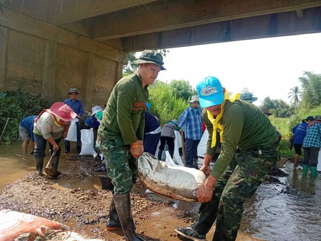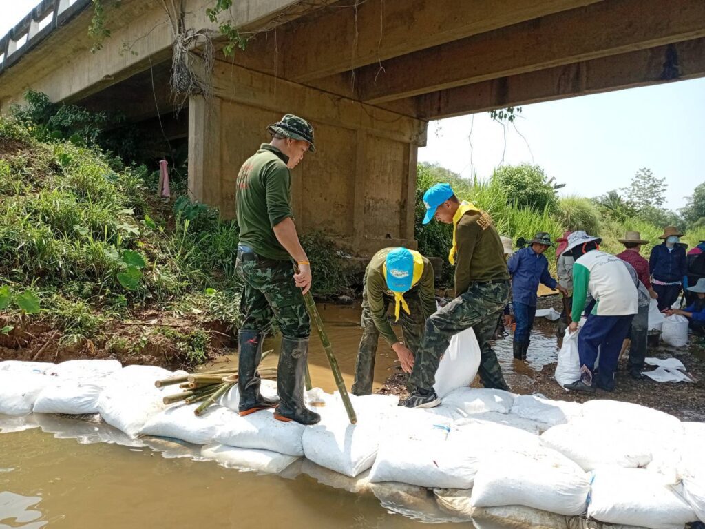 เมื่อวันที่ 21 เม.ย.68 เวลา 08.00 น.ชป.กร.318 กกล.ผาเมือง ร่วมกับ ผู้นำชุมชน และ เครือข่ายจิตอาสาประชาสังคม ต.หนองแดง ดำเนินการสร้างฝายผสมผสานแบบไม้ไผ่ จำนวน 1 ฝาย (ขนาด ยาว 15 ม.× กว้าง 2 ม.× สูง 1 ม.) เพื่อกักเก็บน้ำบรรเทาความเดือดร้อนให้กับประชาชนในห้วงฤดูแล้ง, ฟื้นฟูแหล่งอนุรักษ์พันธุ์สัตว์น้ำ และเพิ่มความชุ่มชื้นให้ผืนป่าในกิจกรรม การสร้างฝายเพิ่มความชุ่มชื้นให้ผืนป่า ตามแผนปฏิบัติการป้องกันภัยชุมชน “หนองแดงรักษ์ป่าไม้และสิ่งแวดล้อม” มีผู้เข้าร่วมกิจกรรมฯ จำนวน 60 คน ณ ลำน้ำแม่จริม บ.พรหม ม.1 ต.หนองแดง อ.แม่จริม จว.น.น.