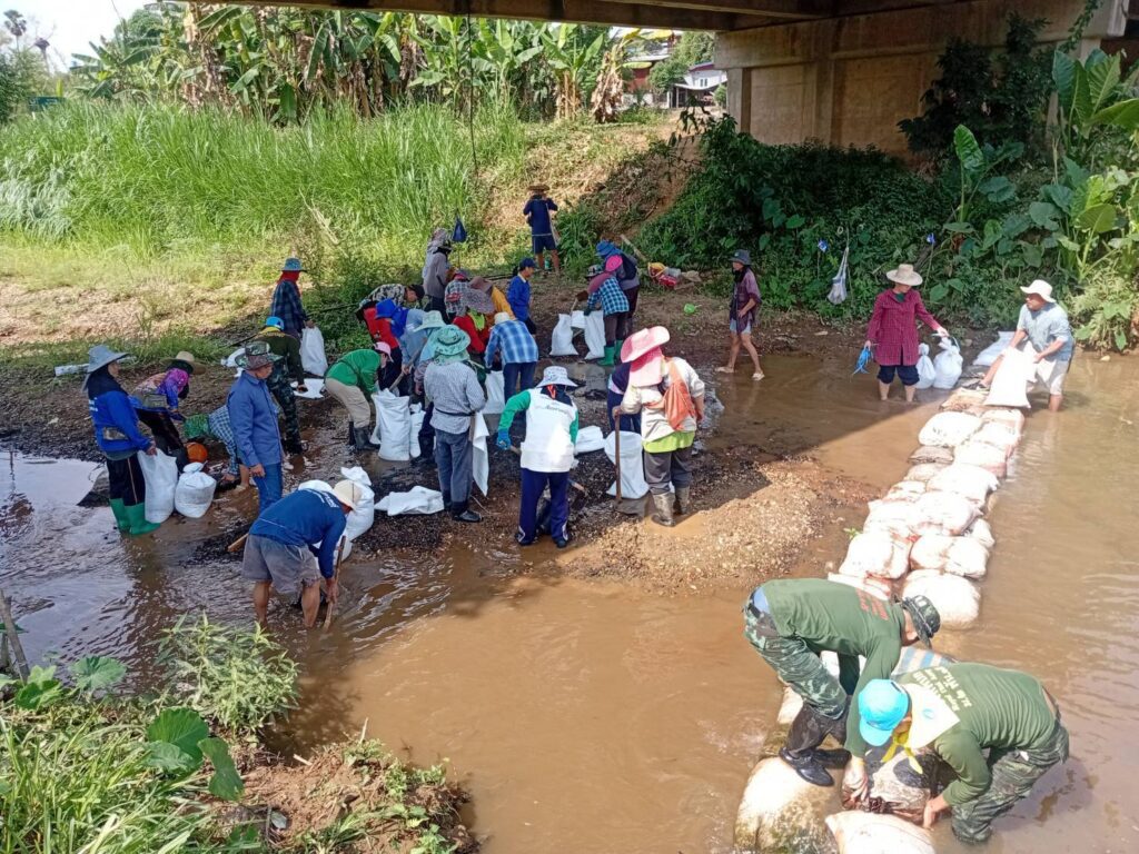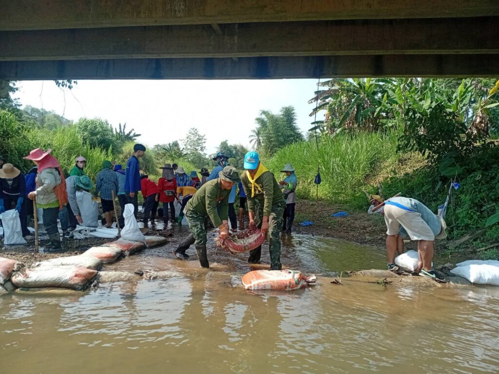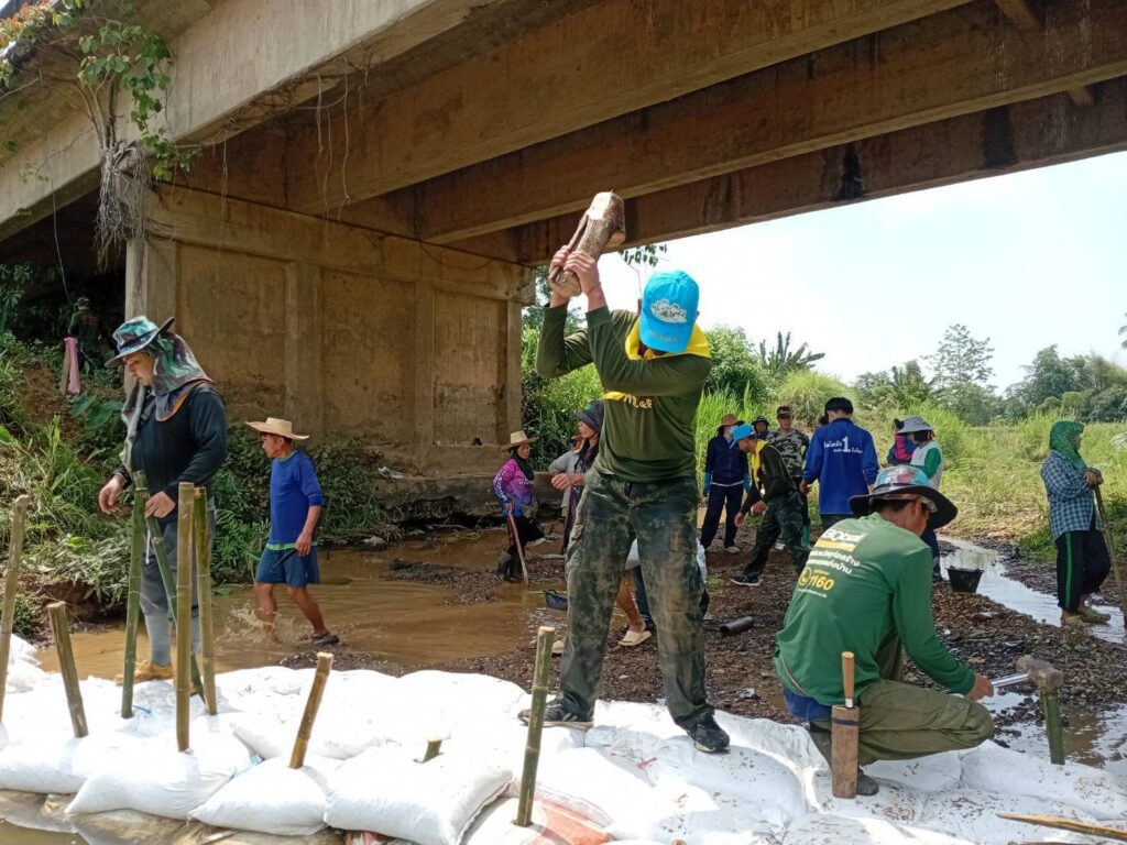 เมื่อวันที่ 21 เม.ย.68 เวลา 08.00 น.ชป.กร.318 กกล.ผาเมือง ร่วมกับ ผู้นำชุมชน และ เครือข่ายจิตอาสาประชาสังคม ต.หนองแดง ดำเนินการสร้างฝายผสมผสานแบบไม้ไผ่ จำนวน 1 ฝาย (ขนาด ยาว 15 ม.× กว้าง 2 ม.× สูง 1 ม.) เพื่อกักเก็บน้ำบรรเทาความเดือดร้อนให้กับประชาชนในห้วงฤดูแล้ง, ฟื้นฟูแหล่งอนุรักษ์พันธุ์สัตว์น้ำ และเพิ่มความชุ่มชื้นให้ผืนป่าในกิจกรรม การสร้างฝายเพิ่มความชุ่มชื้นให้ผืนป่า ตามแผนปฏิบัติการป้องกันภัยชุมชน “หนองแดงรักษ์ป่าไม้และสิ่งแวดล้อม” มีผู้เข้าร่วมกิจกรรมฯ จำนวน 60 คน ณ ลำน้ำแม่จริม บ.พรหม ม.1 ต.หนองแดง อ.แม่จริม จว.น.น.