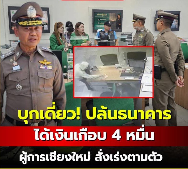 เชียงใหม่-โจรบุกเดี่ยว ใช้มีดจี้ชิงทรัพย์ธนาคารกลางเมืองเชียงใหม่ กวาดเงิน 40,000 บาท ก่อนขึ้นรถสี่ล้อแดงหลบหนี