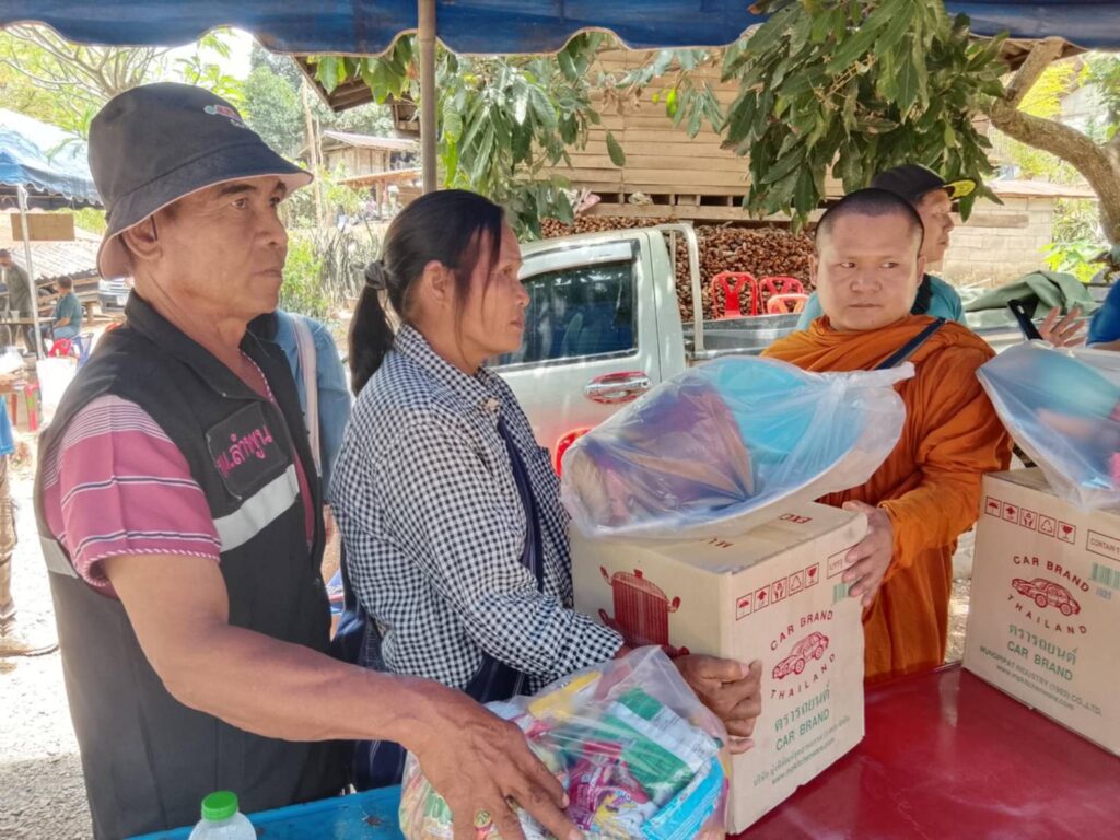 นำโดยพระอธิกาอารักษ์ ญาณธมฺโม พร้อมด้วยพระภิกษุสามเณรและคณะศรัทธาจากพระบาทห้วยต้ม นายพรติศักดิ์ โนจา หัวหน้าศูนย์พัฒนาราษฎร์พื้นที่สูง อำเภอลี้ ผู้ใหญ่บ้าน ม.18 อ.บ.ต.ผู้ช่วยได้มามอบสิ่งของให้กับผู้ประสบภัยน้ำป่าไหลหลากในหมู่บ้านห้วยฮ่อม อำเภอแม่ทา จังหวัดลำพูน เพื่อเป็นขวัญกำลังใจให้กับผู้ประสบภัยทุกๆคน