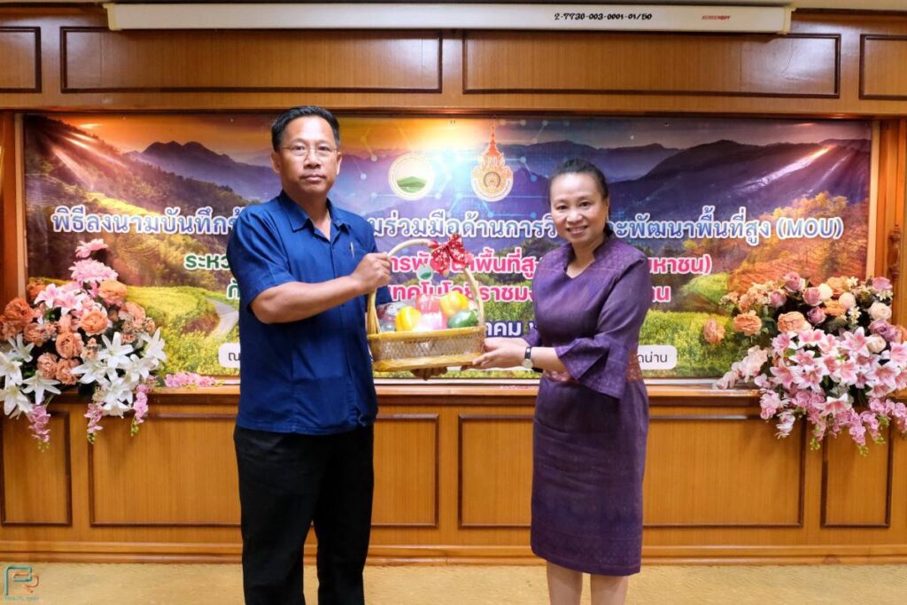 พิธีลงนามได้รับเกียรติจาก นางวิไลวรรณ บุดาสา รองผู้ว่าราชการจังหวัดน่าน เป็นประธานในพิธี พร้อมด้วย นายวิรัตน์ ปราบทุกข์ ผู้อำนวยการสถาบันวิจัยและพัฒนาพื้นที่สูง และ รองศาสตราจารย์วิเชษฐ ทิพย์ประเสริฐ รักษาราชการแทนอธิการบดีมหาวิทยาลัยเทคโนโลยีราชมงคลล้านนา ร่วมลงนามความร่วมมือ โดยมีคณะผู้บริหารและบุคลากรจากทั้งสองหน่วยงานร่วมเป็นสักขีพยานอย่างพร้อมเพรียง ความร่วมมือในครั้งนี้มุ่งเน้นการบูรณาการองค์ความรู้ด้านวิทยาศาสตร์ เทคโนโลยี และนวัตกรรม เพื่อสนับสนุนการพัฒนาในพื้นที่สูงให้เกิดความเข้มแข็ง ยั่งยืน และสามารถถ่ายทอดต่อไปยังประชาชนในชุมชนได้อย่างมีประสิทธิภาพ ทั้งนี้ยังเป็นการส่งเสริมศักยภาพของบุคลากรจากทั้งสองหน่วยงาน และสนับสนุนเป้าหมายการพัฒนาประเทศอย่างยั่งยืน