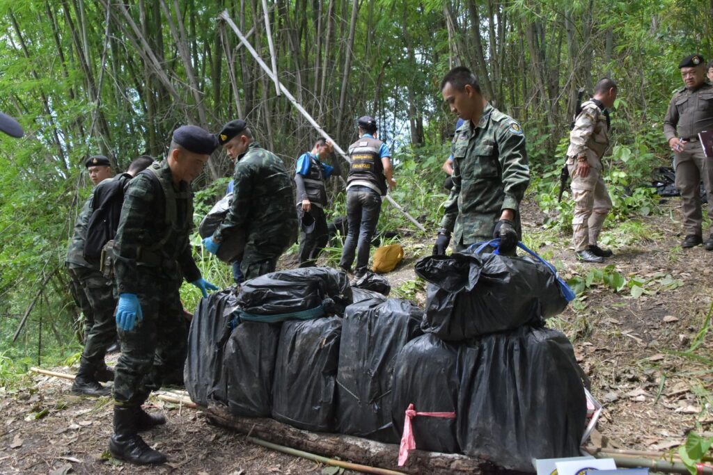 ขณะปฏิบัติหน้าที่ได้ตรวจพบกลุ่มบุคคลต้องสงสัยเดินเท้าสะพายเป้มาตามเส้นทางภูมิประเทศ จึงได้แสดงตัวเพื่อขอตรวจค้น แต่กลุ่มขบวนการฯ ใช้อาวุธไม่ทราบชนิดยิงมายังฝ่ายเจ้าหน้าที่จนเกิดการปะทะ ประมาณ 10 นาที ผลการปะทะ ฝ่ายเจ้าหน้าที่ปลอดภัย จึงได้จัดกำลังเพิ่มเติมจำนวน 2 ชุดปฏิบัติการ วางกำลังเข้าควบคุมพื้นที่เกิดเหตุไว้ และได้ทำการเข้าตรวจสอบของกลางในพื้นที่เกิดเหตุ ตรวจพบกระสอบดัดแปลง จำนวน 20 กระสอบ ภายในบรรจุ ยาเสพติดให้โทษ ประเภท 1 (ยาบ้า) กระสอบละ 200,000 เม็ด รวมประมาณทั้งสิ้น 4,000,000 เม็ด กลุ่มขบวนการฯ เสียชีวิต 2 ราย และพบปลอกกระสุนปืน ขนาด 7.62 มม.(AK-47) จำนวน 1 ปลอก และปลอกกระสุน ปืนลูกซอง ขนาด 12 เกจ จำนวน 1 ปลอก ตกอยู่บริเวณพื้นที่เกิดเหตุ