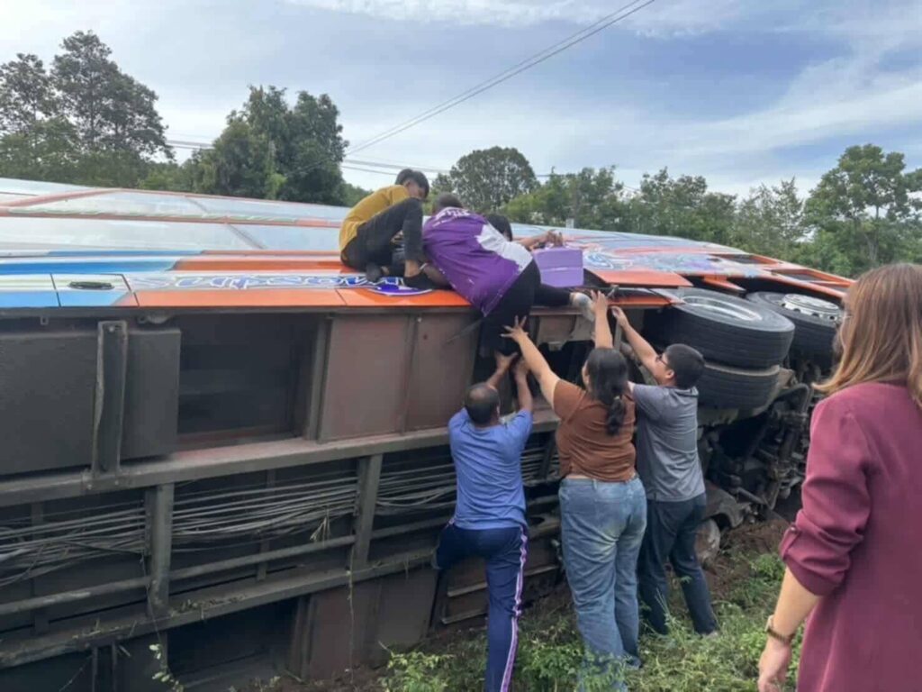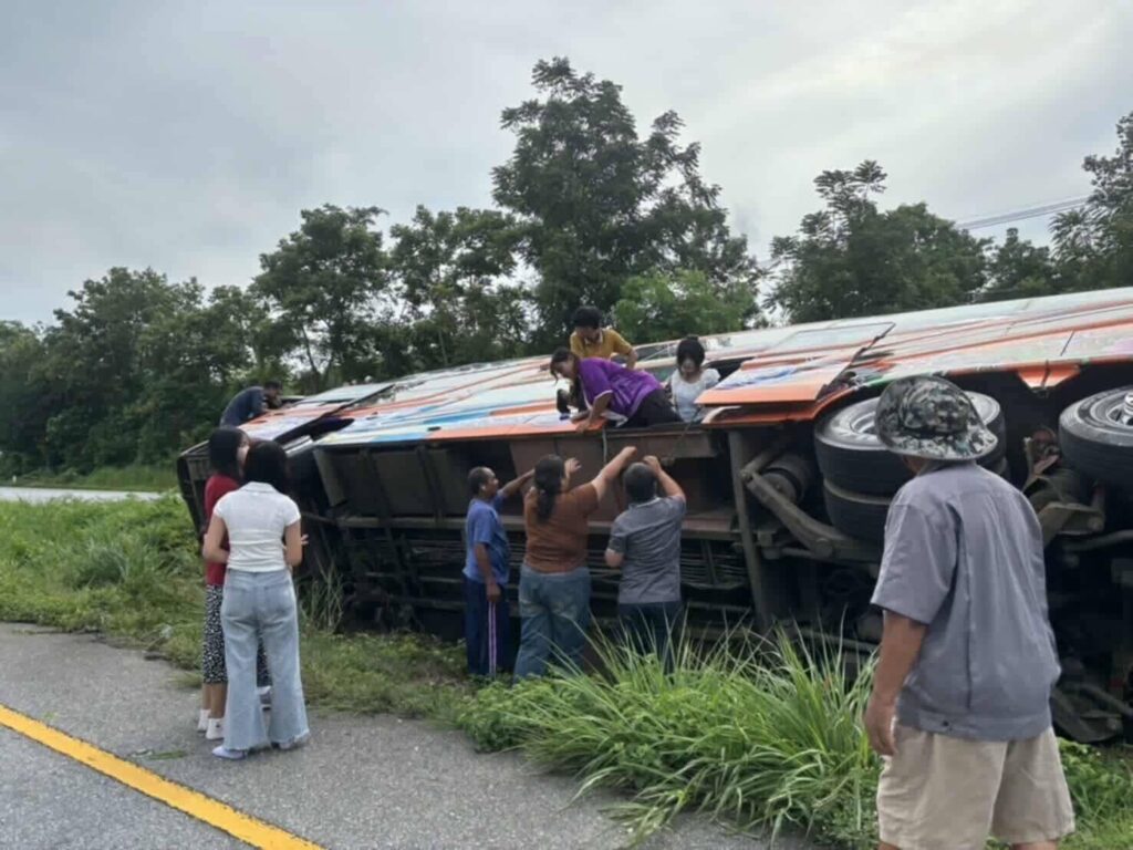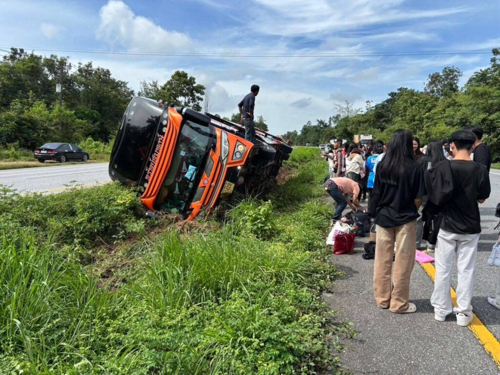 เมื่อวันที่ 21 ส.ค .68 เวลา 09.20 น.ได้รับแจ้งจากศูนย์วิทยุ สภ.ตรอน ว่ามีเหตุ ว.40 บริเวณถนนทางหลวงหมายเลข 11 ฝั่งขาขึ้น สายตรวจน้ำอ่างจึงออกตรวจสอบ พบรถยนต์บัส สีส้ม ทะเบียน 30-0429 พิษณุโลก เป็นรถบัสนำนักเรียน โรงเรียนเตรียมอุดมศึกษาภาคเหนือพิษณุโลก จะเดินทางไปจังหวัดพะเยา จำนวนนักเรียน40คน คุณครู 3คน เสียหลักตกร่องถนนลงข้างทาง มีผู้ได้รับบาดเจ็บเล็กน้อย หญิง 2ราย ไม่มีสิ่งของทางราชการเสียหาย กู้ชีพน้ำอ่างนำคนเจ็บปฐมพยาบาลเบื้งต้น สายตรวจน้ำอ่างดำเนินการอำนวยความสะดวกทางการจราจร ตรวจค้นสิ่งผิดกฏหมายในรถที่เกิดอุบัติเหตุคันดังกล่าว ผลการตรวจค้น ไม่พบสิ่งผิดกฏหมายและแจ้งส่วนที่เกี่ยวข้องเพื่อดำเนินการต่อไป