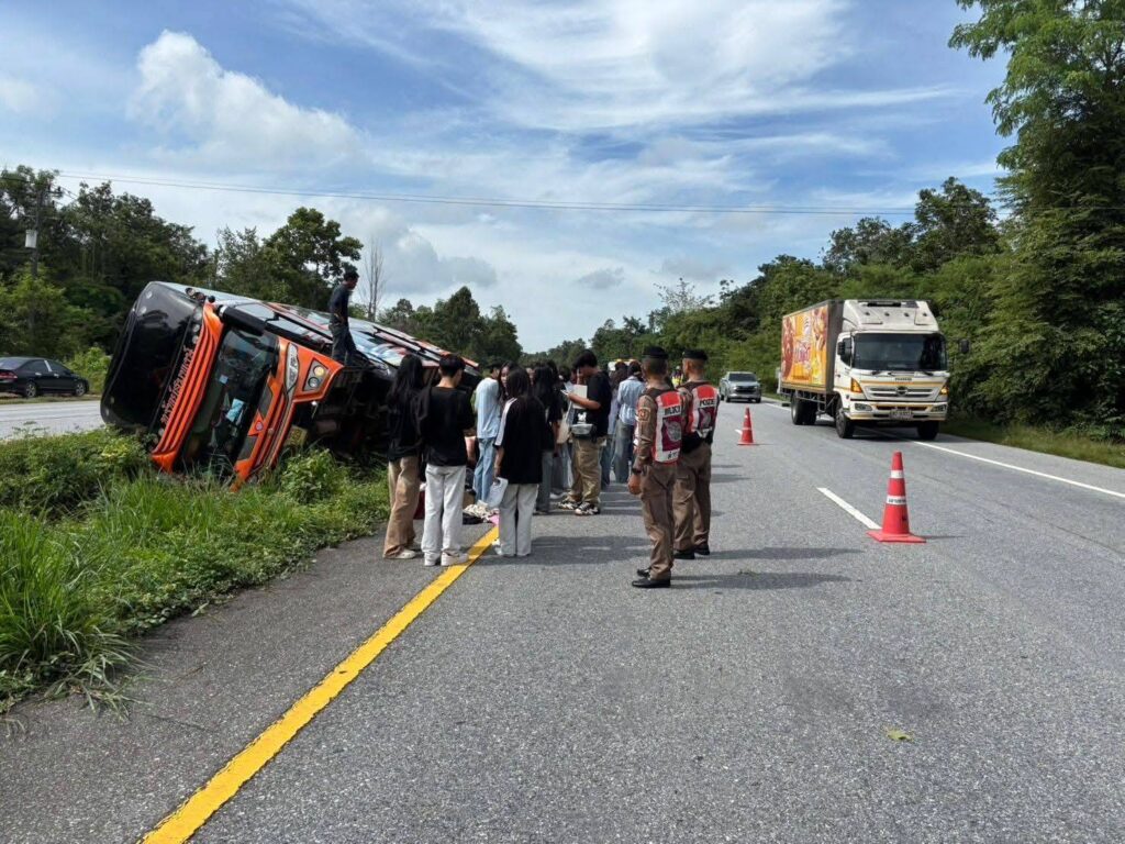 เมื่อวันที่ 21 ส.ค .68 เวลา 09.20 น.ได้รับแจ้งจากศูนย์วิทยุ สภ.ตรอน ว่ามีเหตุ ว.40 บริเวณถนนทางหลวงหมายเลข 11 ฝั่งขาขึ้น สายตรวจน้ำอ่างจึงออกตรวจสอบ พบรถยนต์บัส สีส้ม ทะเบียน 30-0429 พิษณุโลก เป็นรถบัสนำนักเรียน โรงเรียนเตรียมอุดมศึกษาภาคเหนือพิษณุโลก จะเดินทางไปจังหวัดพะเยา จำนวนนักเรียน40คน คุณครู 3คน เสียหลักตกร่องถนนลงข้างทาง มีผู้ได้รับบาดเจ็บเล็กน้อย หญิง 2ราย ไม่มีสิ่งของทางราชการเสียหาย กู้ชีพน้ำอ่างนำคนเจ็บปฐมพยาบาลเบื้งต้น สายตรวจน้ำอ่างดำเนินการอำนวยความสะดวกทางการจราจร ตรวจค้นสิ่งผิดกฏหมายในรถที่เกิดอุบัติเหตุคันดังกล่าว ผลการตรวจค้น ไม่พบสิ่งผิดกฏหมายและแจ้งส่วนที่เกี่ยวข้องเพื่อดำเนินการต่อไป