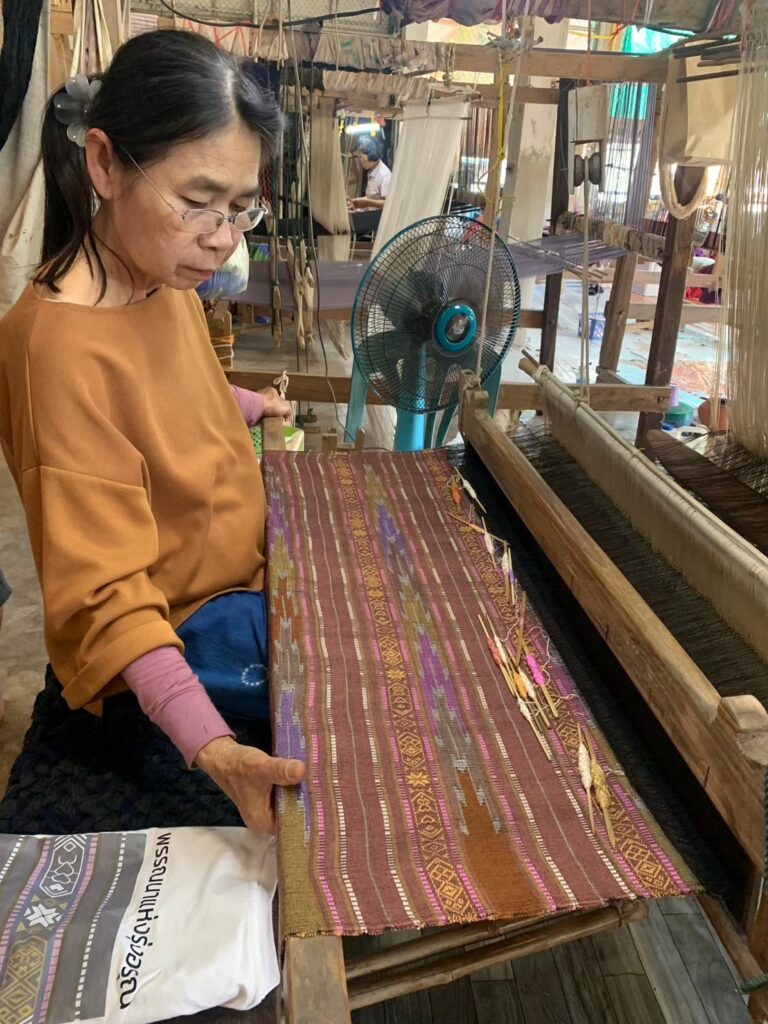 จากนั้น ทีมวิจัยได้คัดเลือกลายที่ได้จาก AI ประมาณ 10 ภาพ ส่งให้ช่างทอในชุมชนพิจารณาว่าสามารถนำไปขึ้นกี่ได้จริงและเหมาะสมตามหลักการออกแบบ ก่อนจะคัดเลือกสุดท้ายเป็นลายต้นแบบสำหรับผลิตจริง